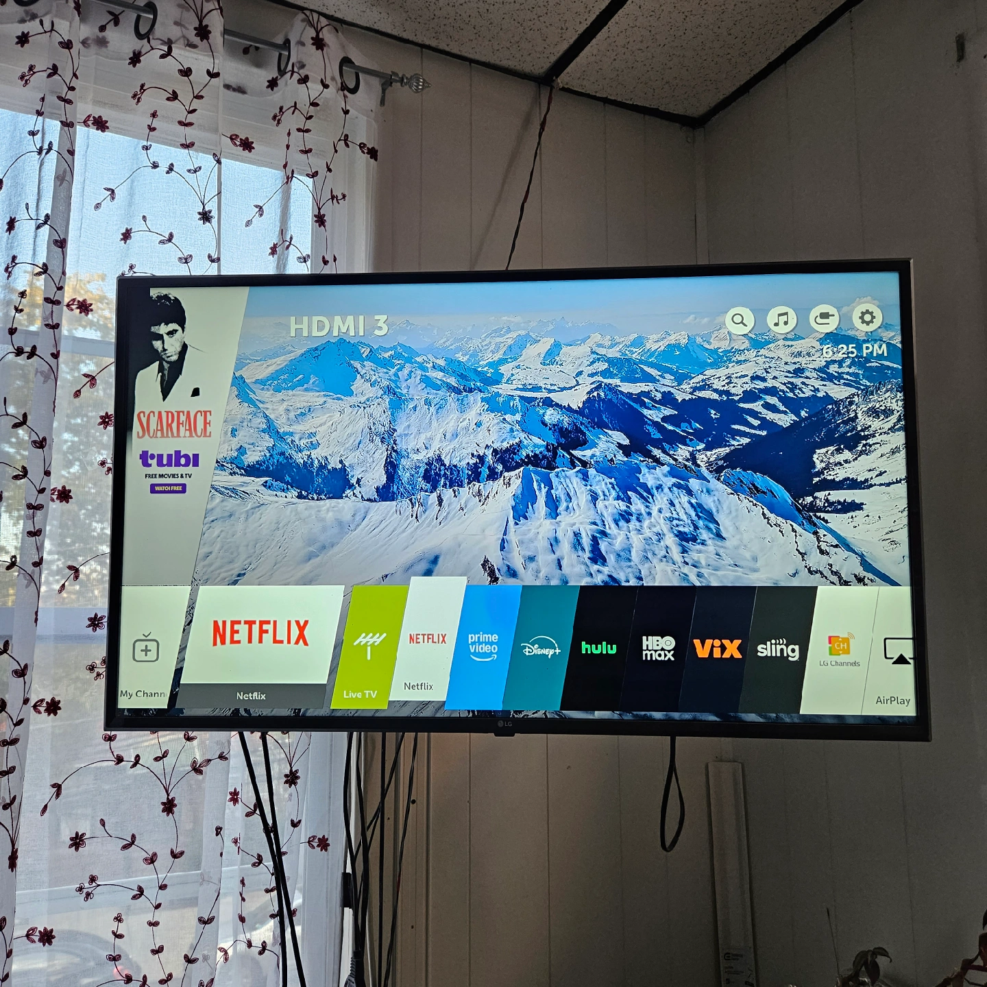 Selling an LG TV. It's in great condition and ready for a new home! Perfect for streaming your favorite shows and movies 44.5 inch x 25.75 inch TV Has 3 HDMI Ports 2 USB Ports Video player Ports Perfect size for any home. Wall Mount NOT Included