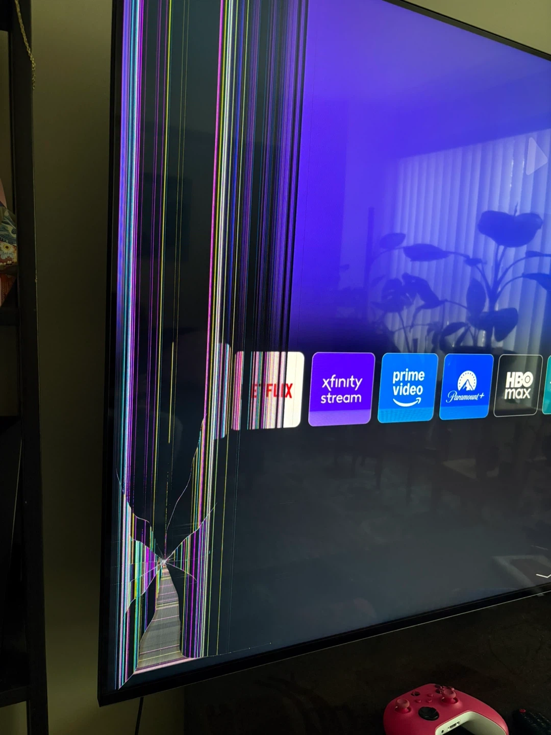 There isn’t a visible flaw on the TV but the screen is cracked. It is fixable, I just don’t have the energy to get it fixed. Other than the screen, it is less than two years old and is in great condition.