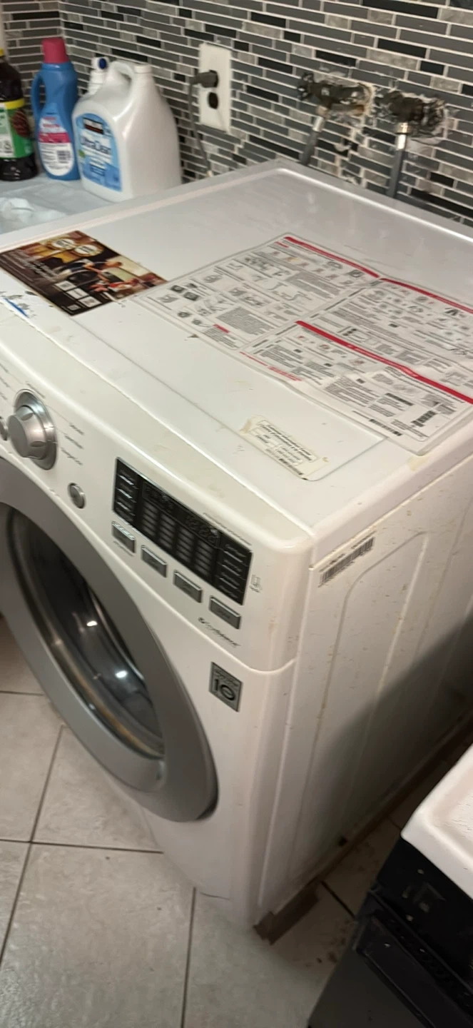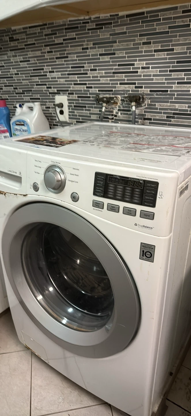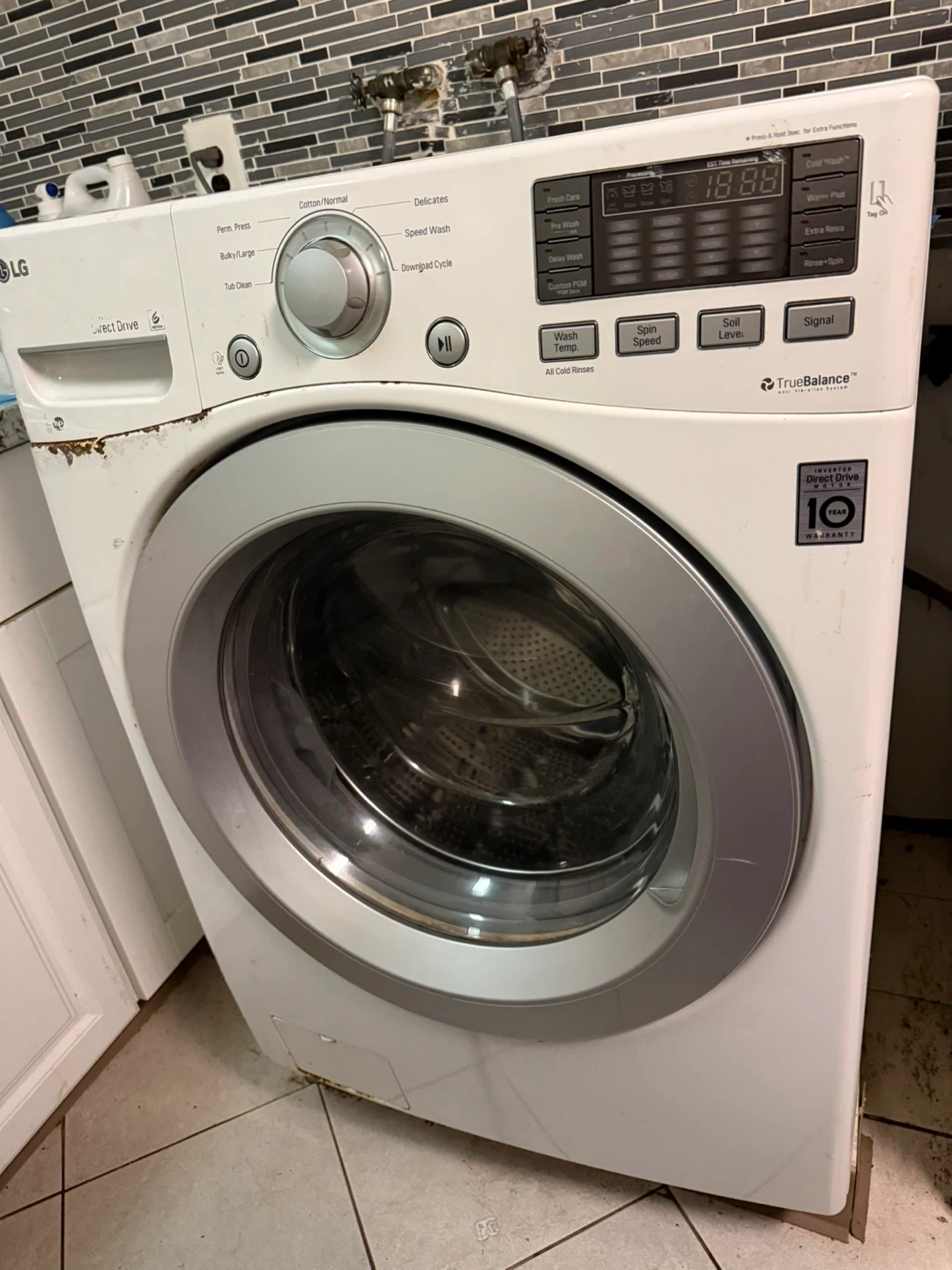Selling an LG Direct Drive washing machine. It's white and has a TrueBalance system. It has some signs of use.