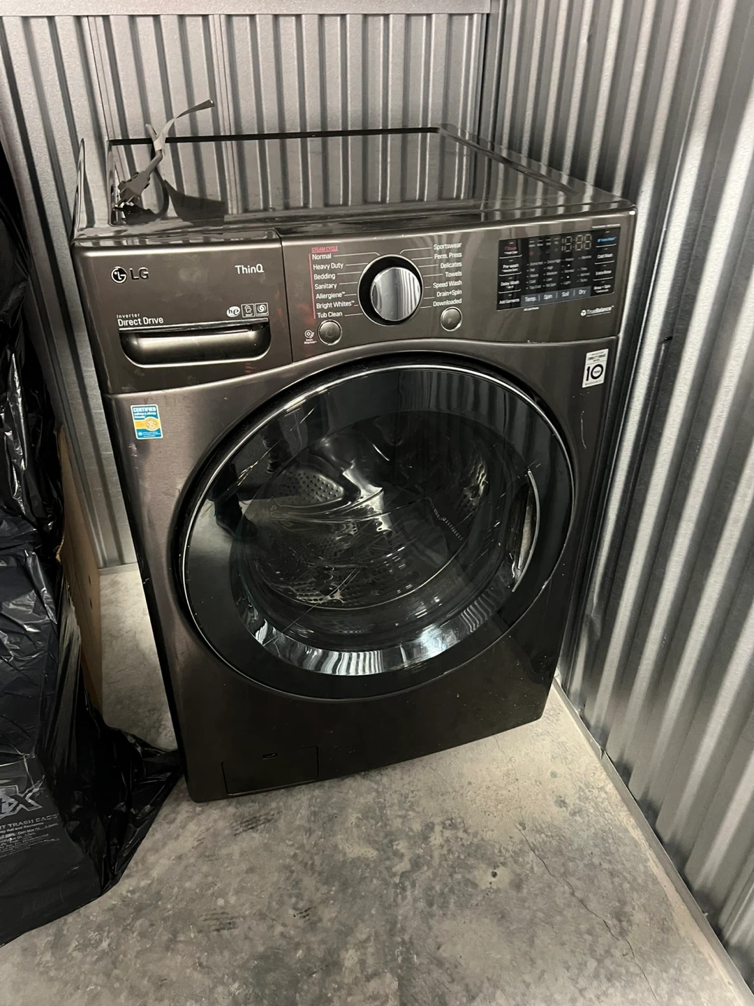 Selling an LG front load washer & Dryer . It's a direct drive model and in good working condition. Features include Normal, Heavy Duty, Bedding, and Allergiene cycles, plus options like Speed Wash, Delay Wash, and Downloaded cycles. It also has a TrueBalance system