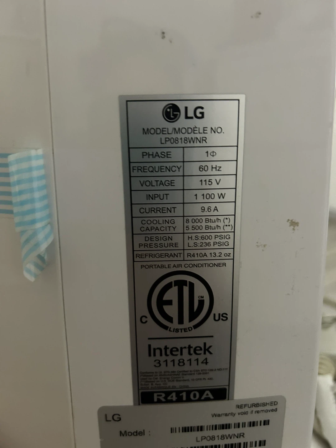 Selling an LG portable air conditioner. It includes the vent hose and window adapter. Perfect for cooling a room without needing a window unit!