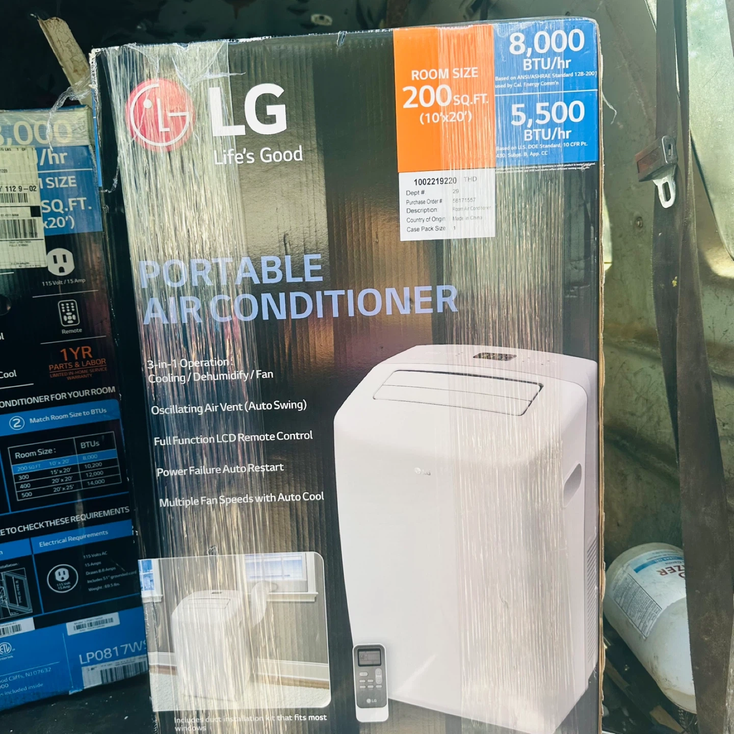 Selling an LG Portable Air Conditioner, model LP0817WS. It's in excellent condition and ready to keep your room cool! - Room Size: 200 sq ft (10'x20') - 8,000 BTU/hr - 3-in-1 Operation: Cooling/Dehumidify/Fan - Oscillating Air Vent (Auto Swing) - Full Function LCD Remote Control - Power Failure Auto Restart - Multiple Fan Speeds with Auto Cool Includes a remote and an installation kit that fits most windows