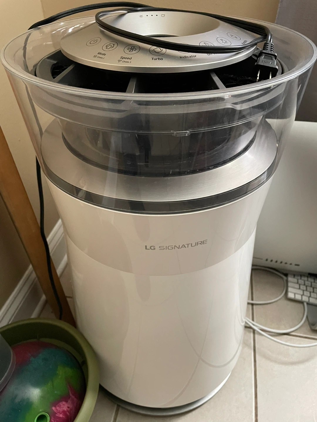 10Selling an LG Signature air purifier in white. It's in great condition and ready to keep your air clean! Features include multiple modes and speed settings, including a turbo mode. It also has humidity and light indicators