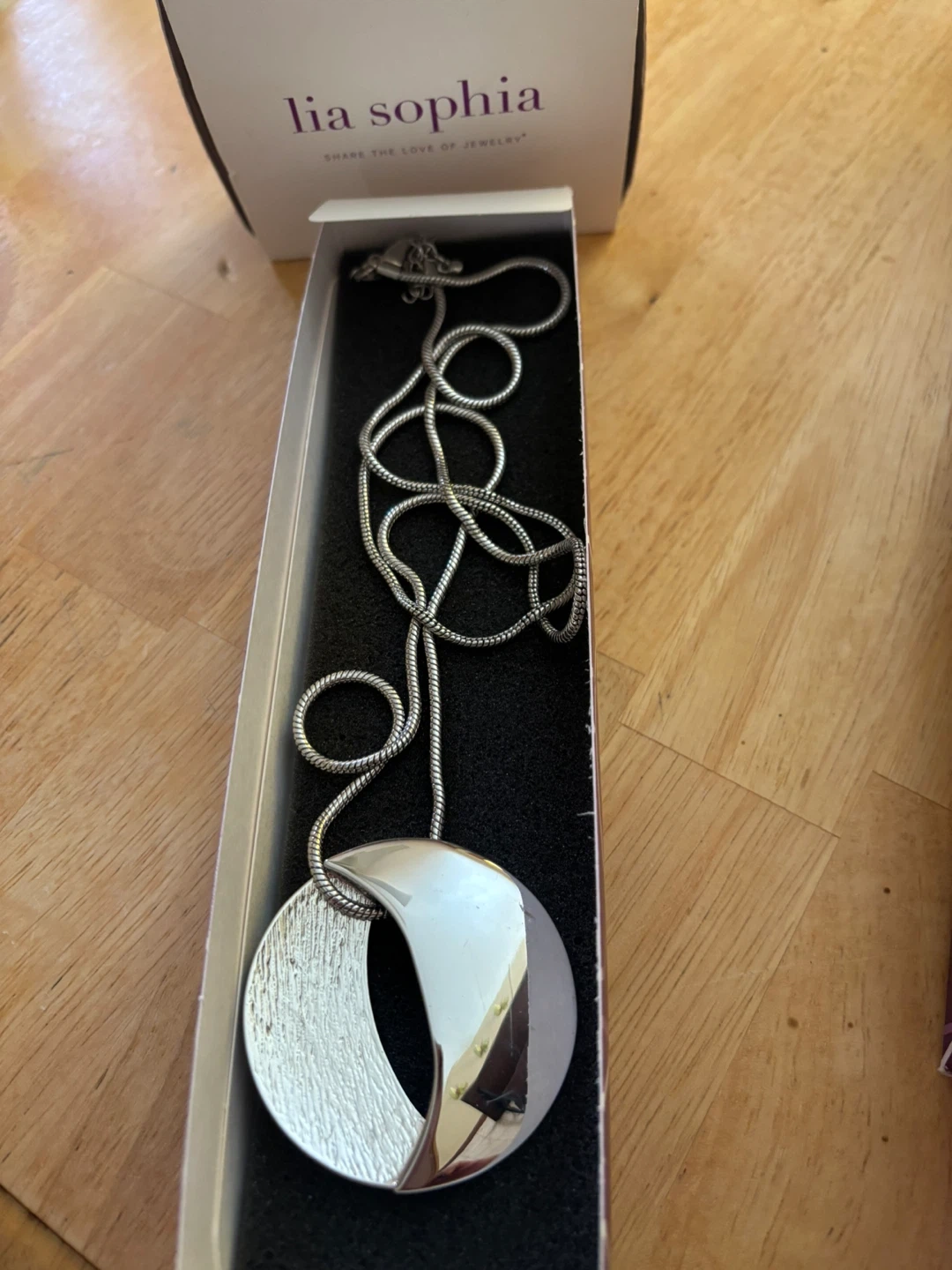 10Selling a Lia Sophia silver necklace. It comes with its original box. This necklace is in excellent condition and ready to be worn!
