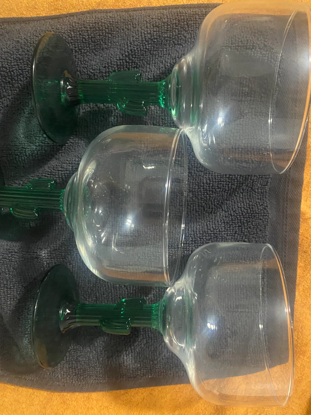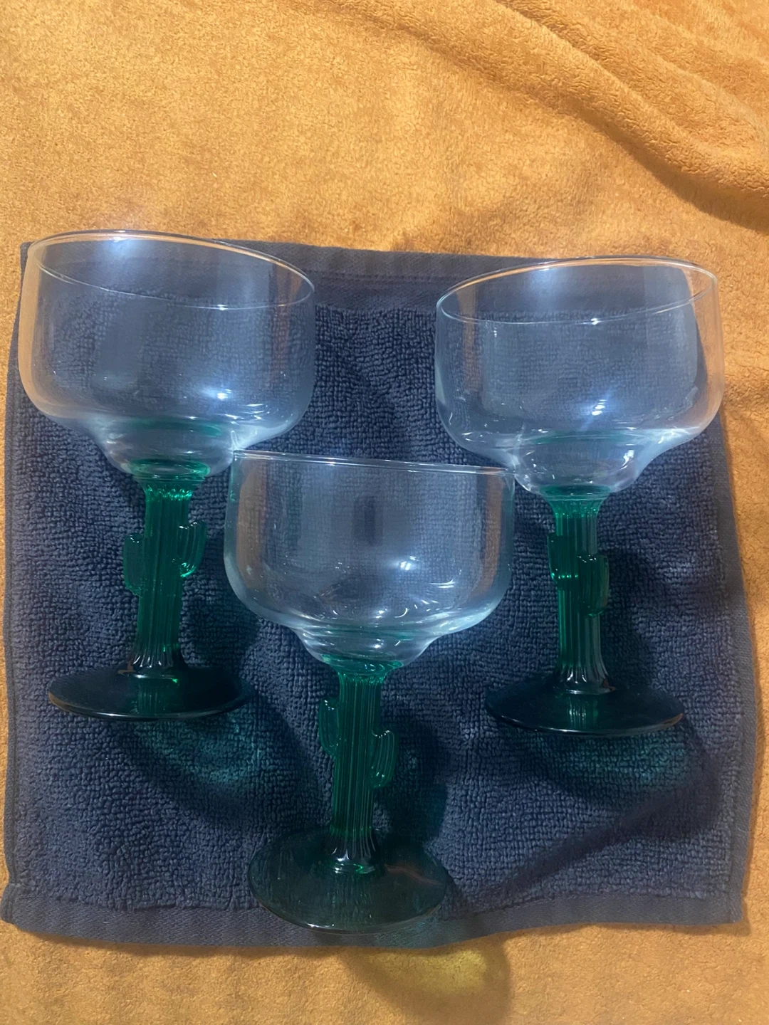 Selling a set of three Libbey Cactus margarita glasses of 16 OZ, each with a fun cactus stem! They're in great condition and ready for your next fiesta.
