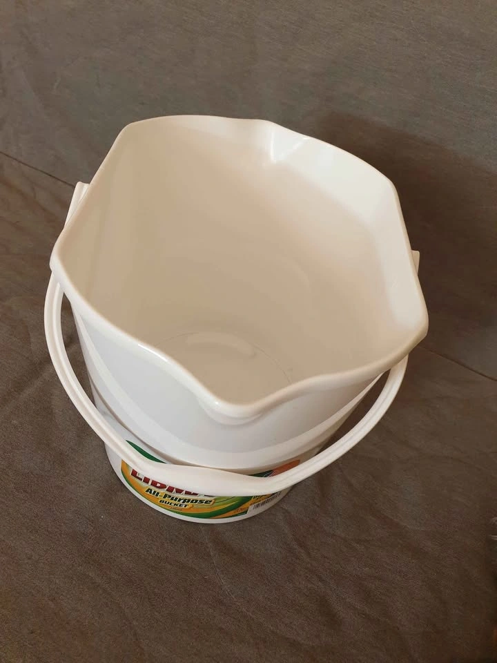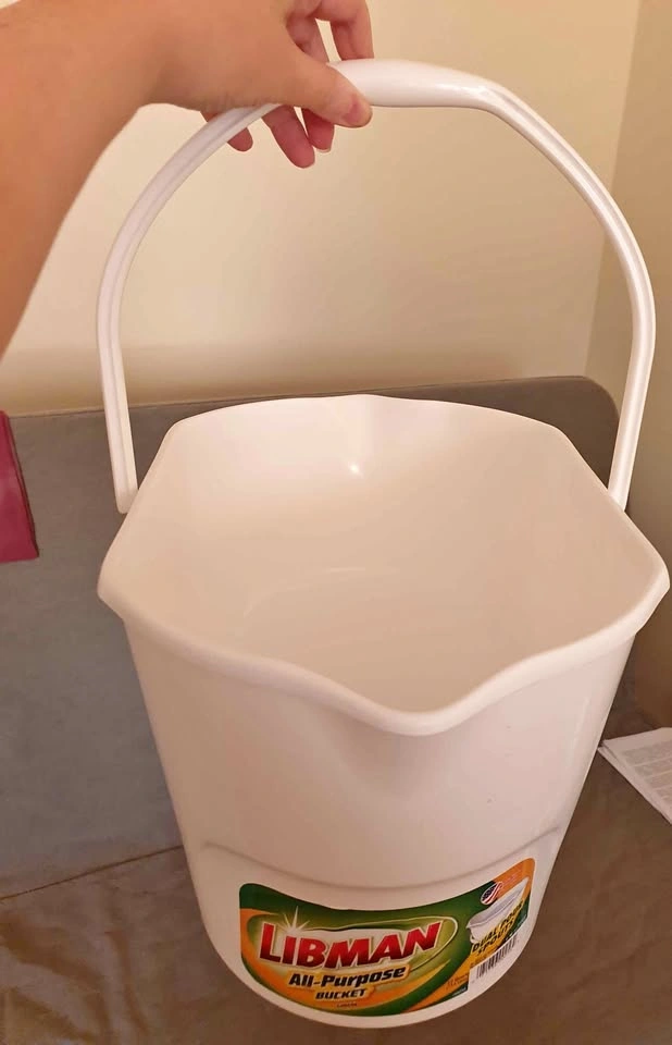For sale: 1. Libman all-purpose bucket 2. Bathroom/ kitchen hanging corner shelf