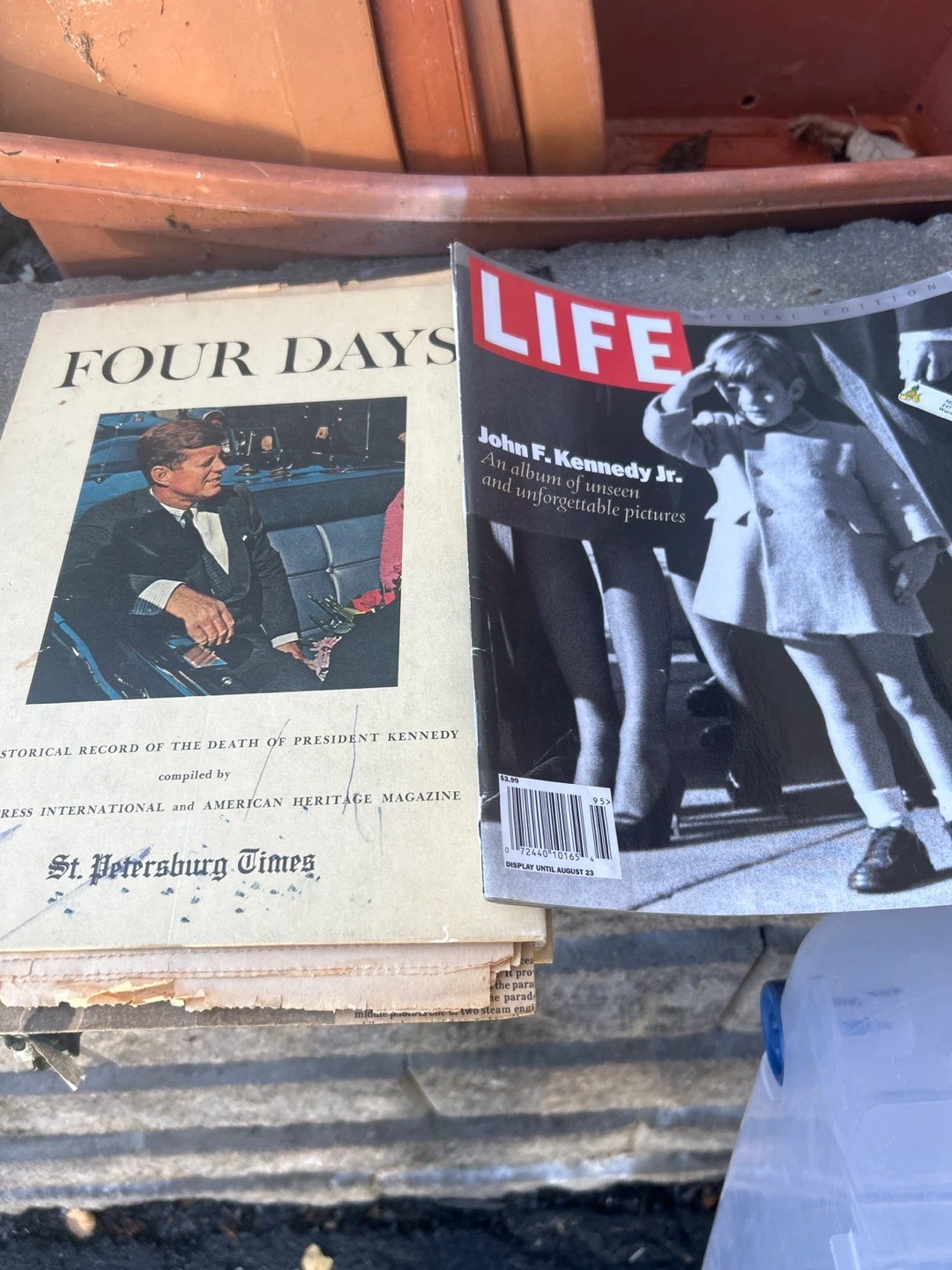 10Selling two magazines: a special edition of LIFE featuring John F. Kennedy Jr. with unseen pictures, and "Four Days," a historical record of President Kennedy's death compiled by the St. Petersburg Times. The LIFE magazine originally sold for $3.99 and displays until August 23.