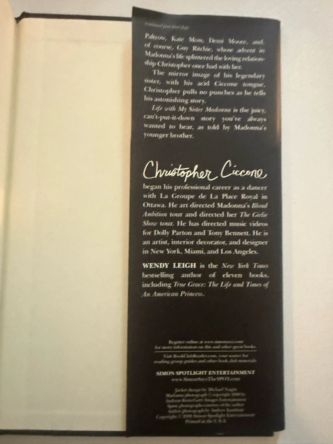 65Selling the book "Life with My Sister Madonna" by Christopher Ciccone with Wendy Leigh. The book is a Simon Spotlight Entertainment hardcover edition.