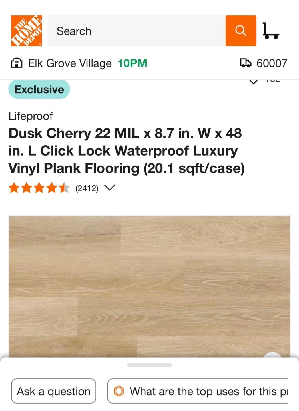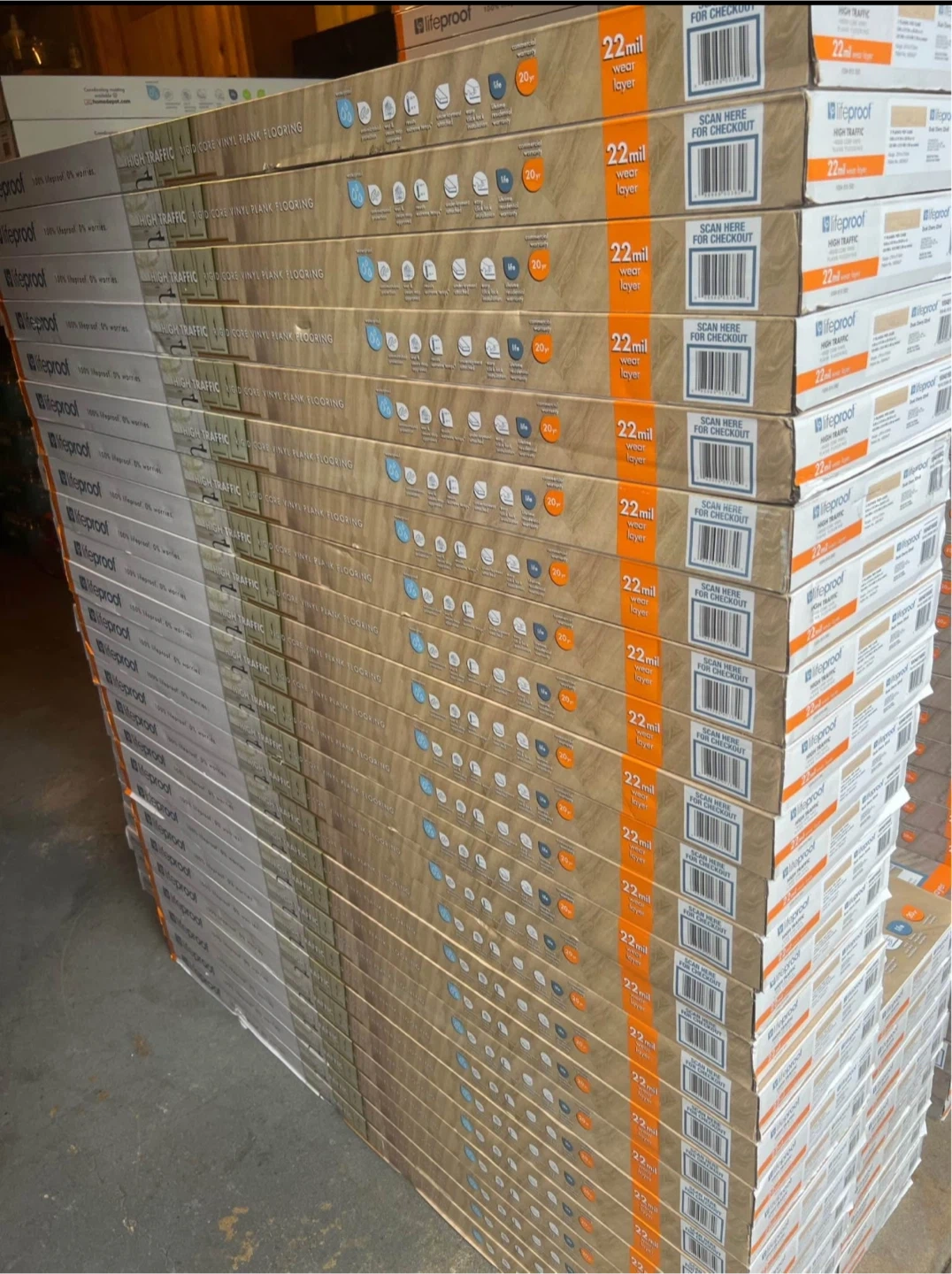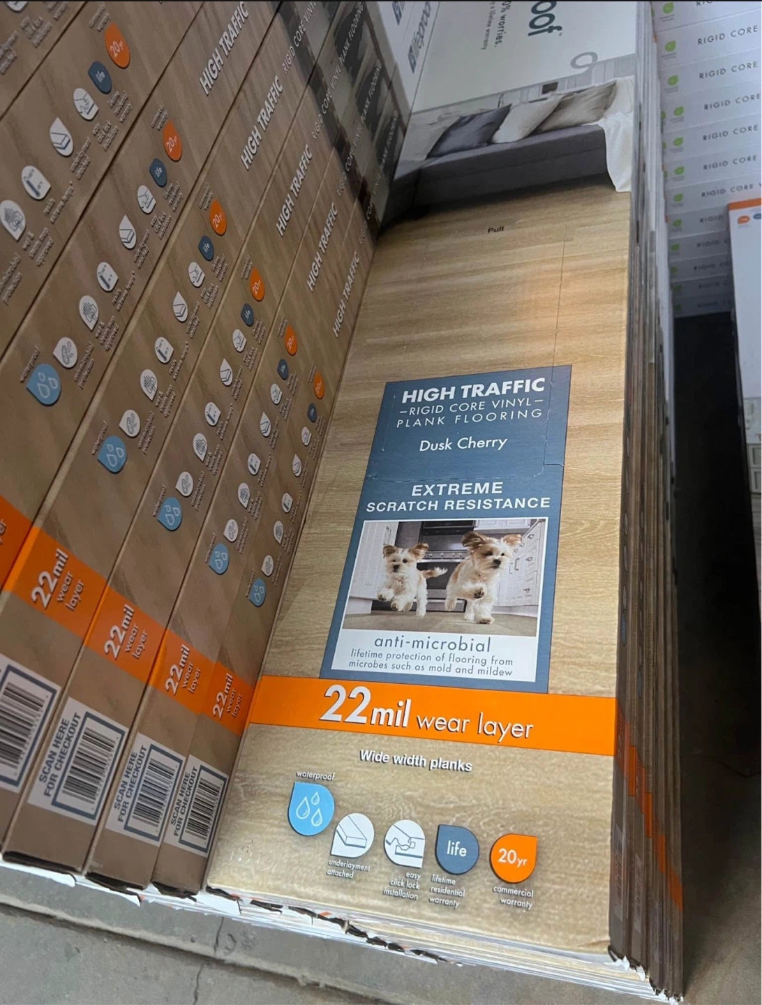 15Selling LifeProof rigid core vinyl plank flooring in the Dusk Cherry color! These planks are designed for high traffic areas and feature extreme scratch resistance. Each box contains 7 planks, covering 5.88 sq ft (220 mm x 1210 mm). They also have an anti-microbial layer for lifetime protection from microbes, mold, and mildew! The wear layer is 22mil and the planks are wide width I have a Brand new 60 boxes $48 each box.