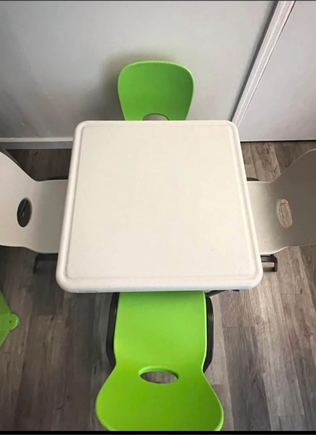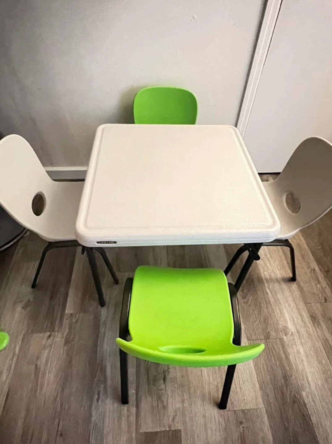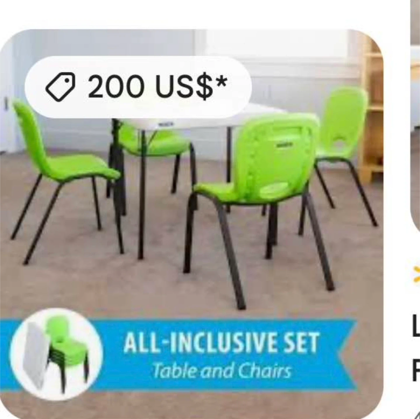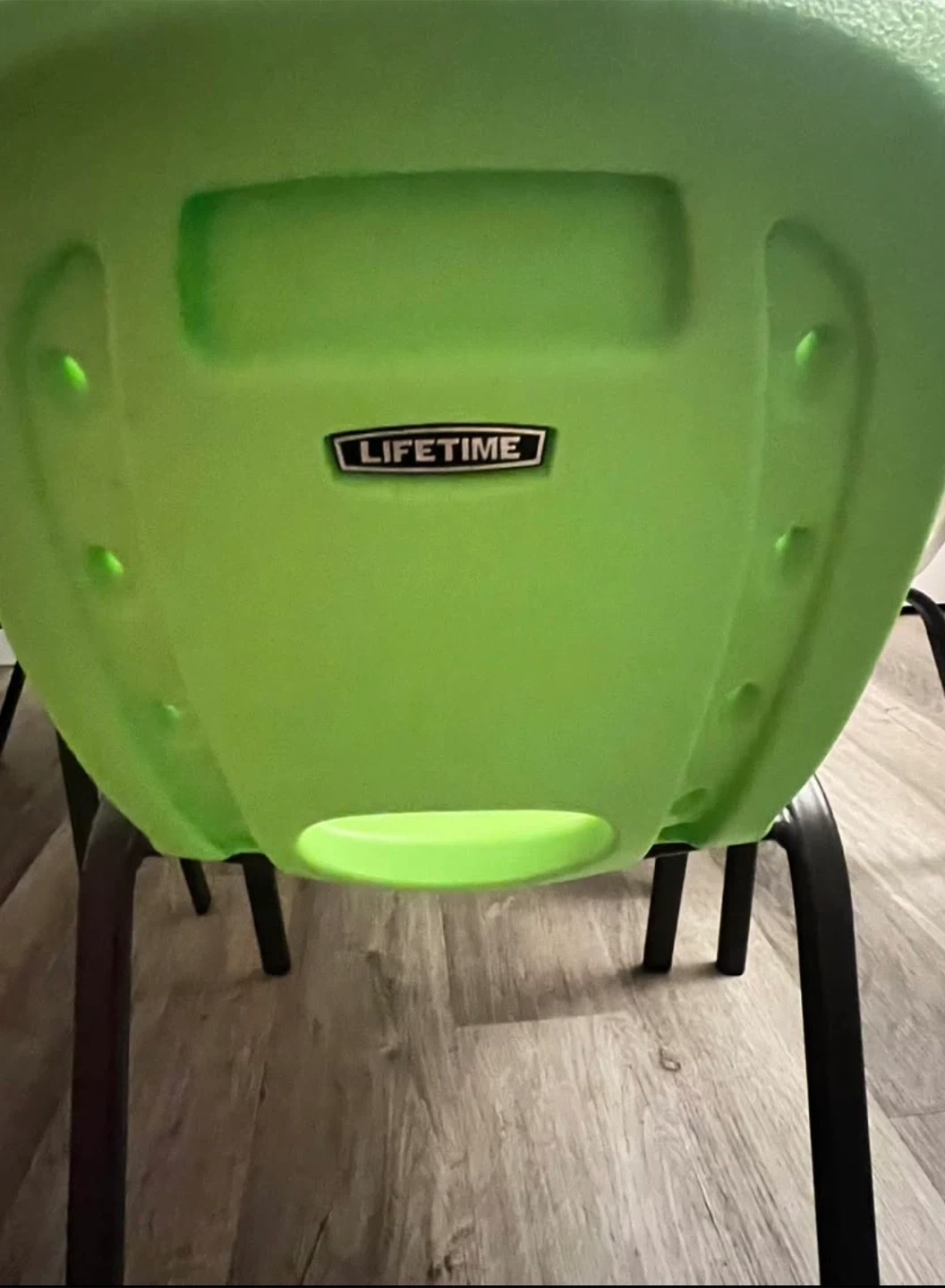 This is an all-inclusive Lifetime kids table and chairs set! The set includes a table and chairs, perfect for your little ones. The chairs are a vibrant green color
