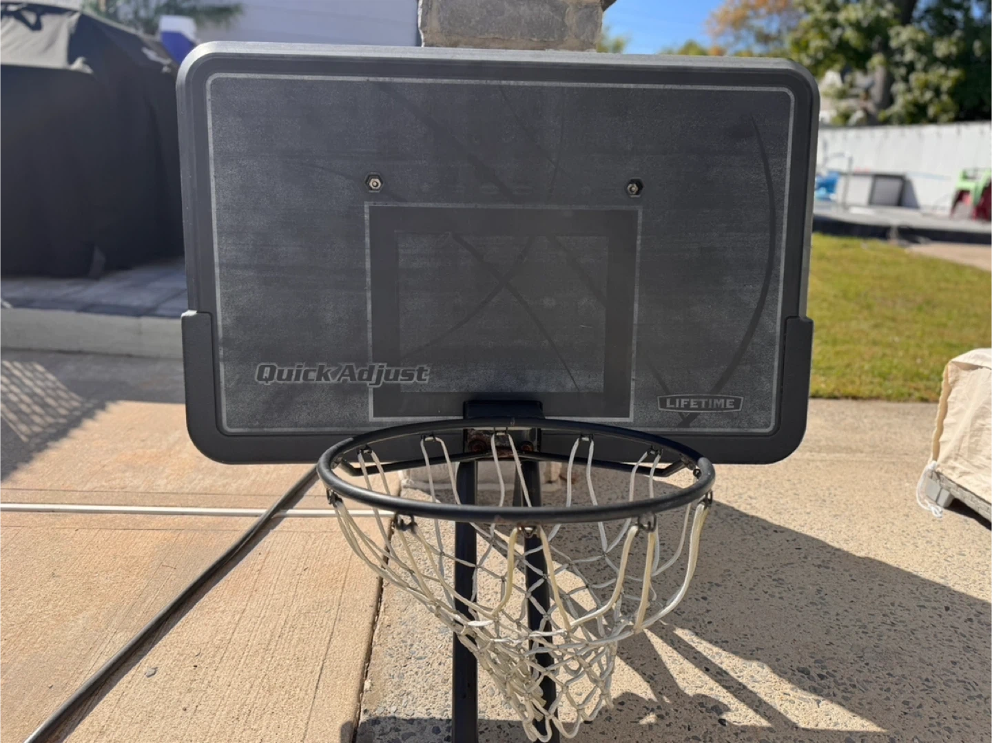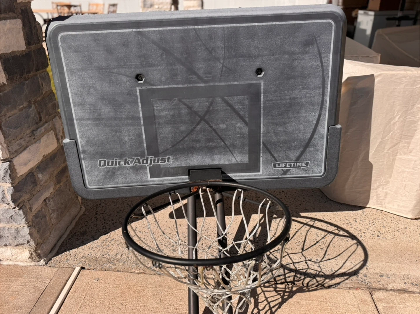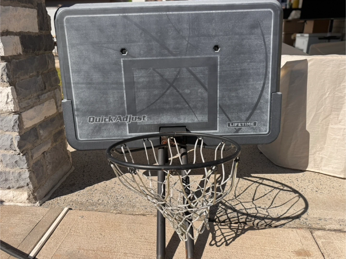 Selling a Lifetime Quick Adjust portable basketball hoop. In good condition for some outdoor fun! Just backboard and hoop only.