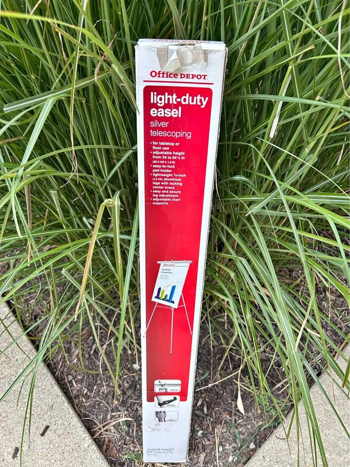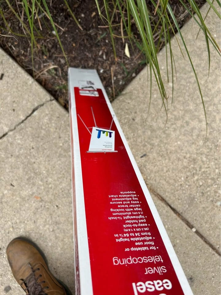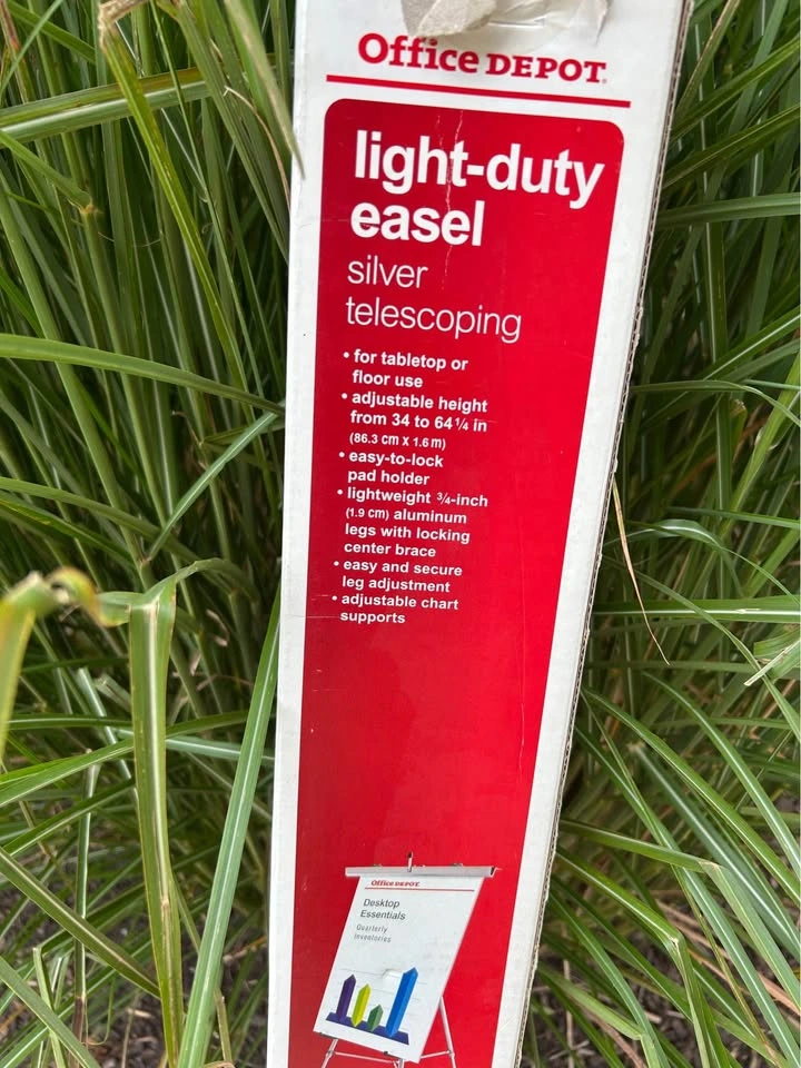Brand new easel, all pieces included. Goes together easily, fits large canvasses. Located in new Lenox! Please let me know if you have any questions or need any more pictures!