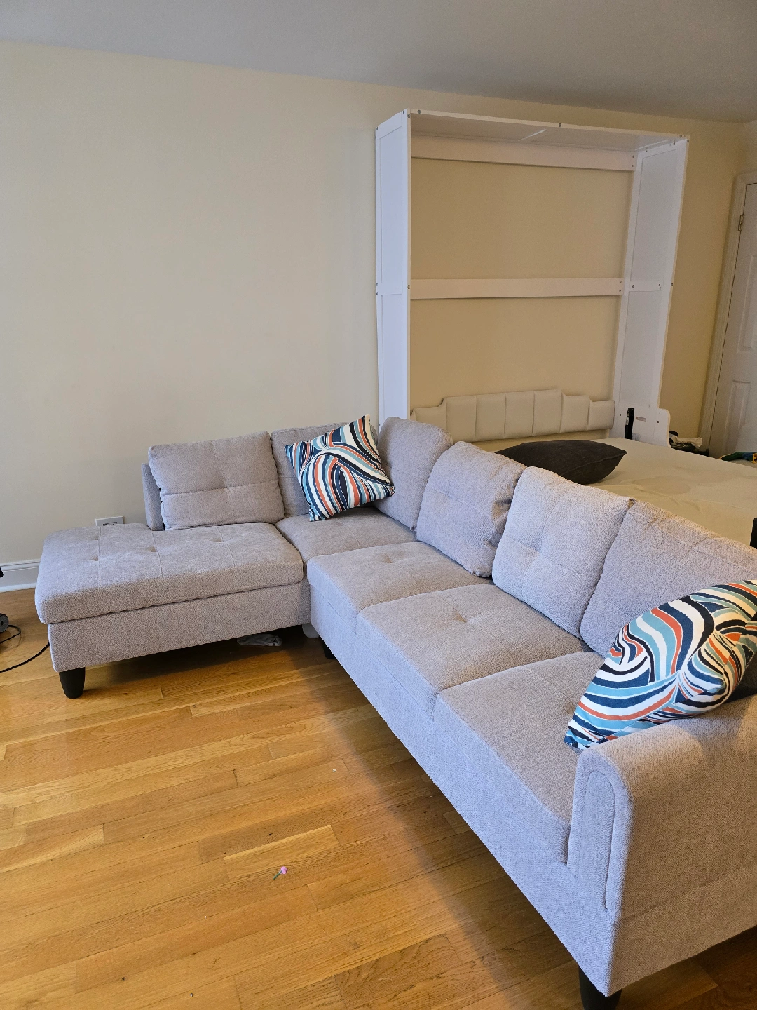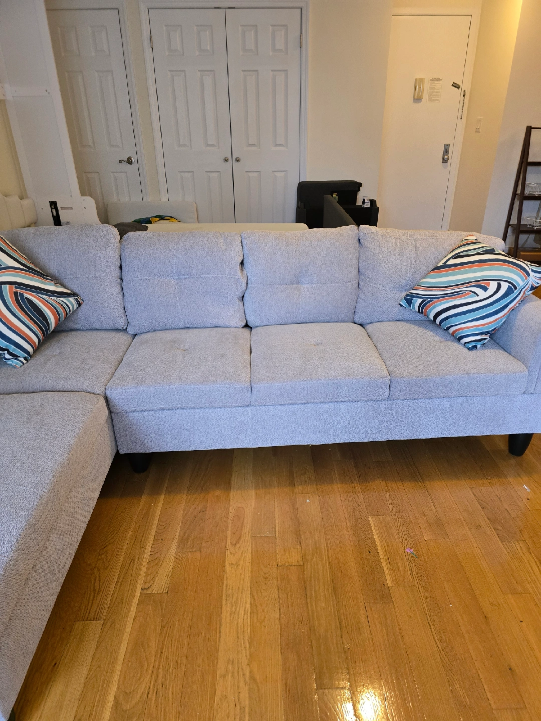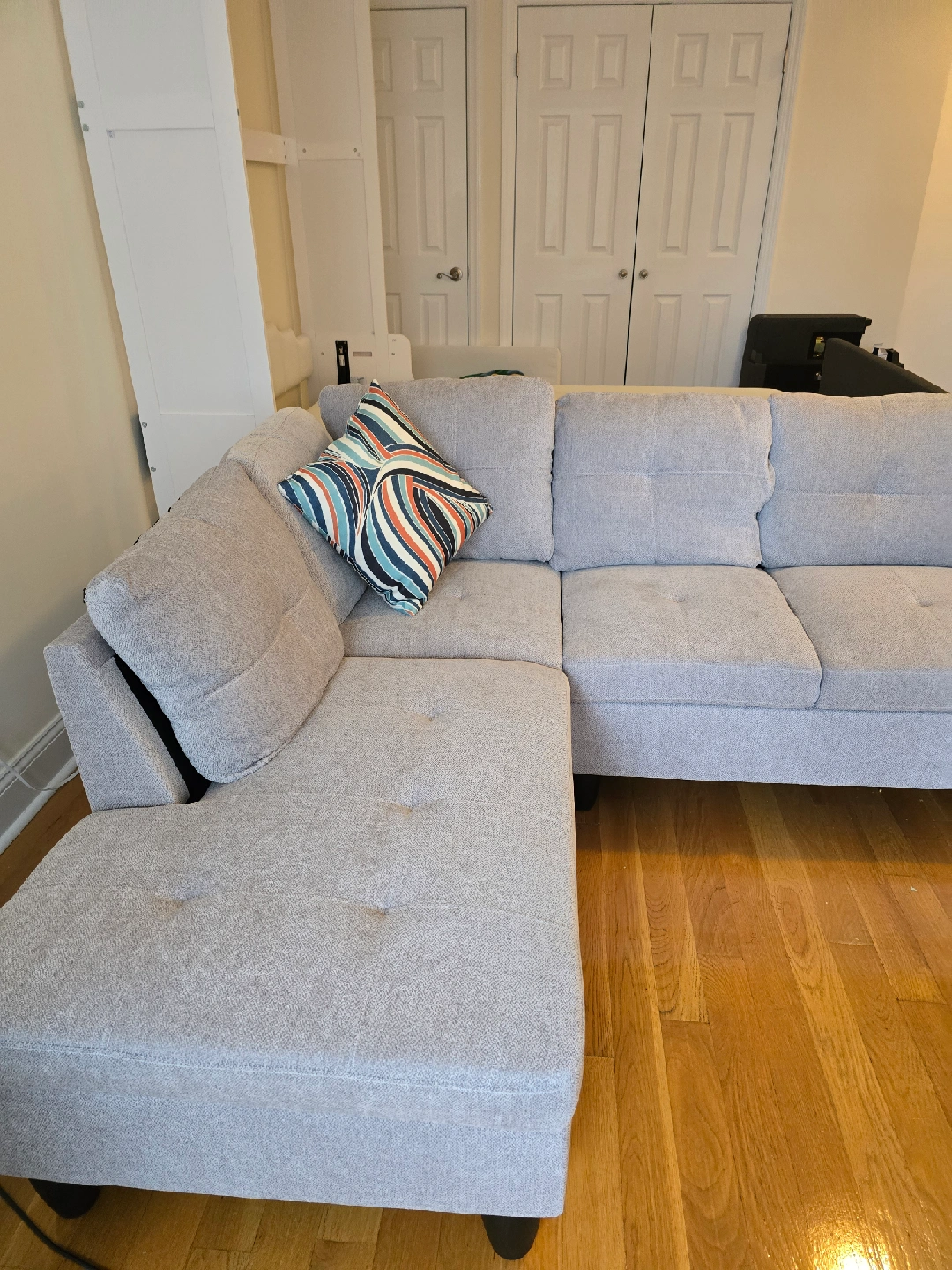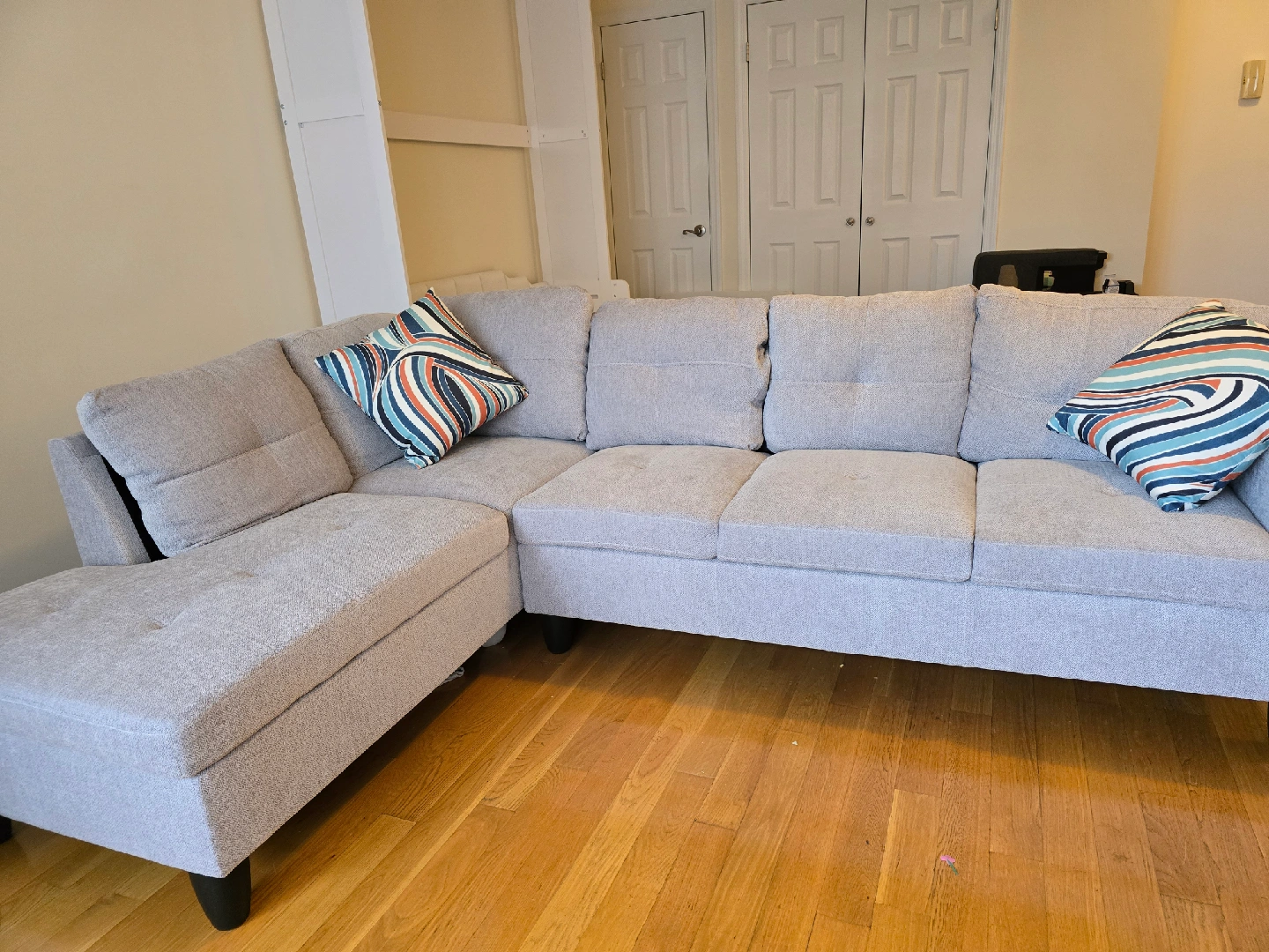 Moving out of state. Must go..Lightweight easy to lift. Can be easily disconnected Aukfa 97" Flannel Sectional Sofa L shape Couch with Chaise for Living Room, Light Gray, Aukfa 97" Flannel Sectional Sofa L shape Couch with Chaise for Living Room, Light Gray