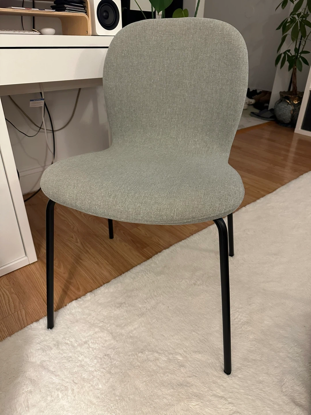 91Selling a light green chair with black legs. It's in excellent condition and would look great in any dining room or office space! The chair has a comfortable seat and back, perfect for long meals or work sessions. Rarely used.