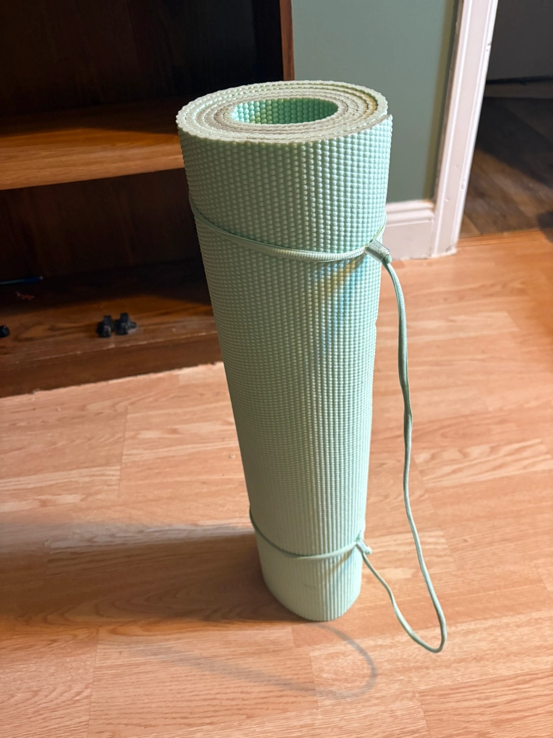 94Selling a light green yoga mat! It's in great condition and ready for your next workout or meditation session. Perfect for home or the gym. You might just need to give it a wipe down.