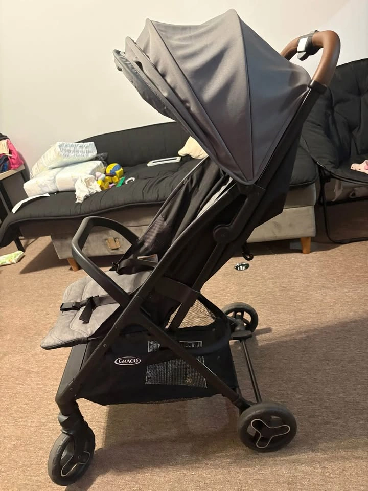 It’s easy to fold (with one hand) while holding baby in other. Fits a good amount of stuff on the bottom. Reclines good enough for child to sleep.