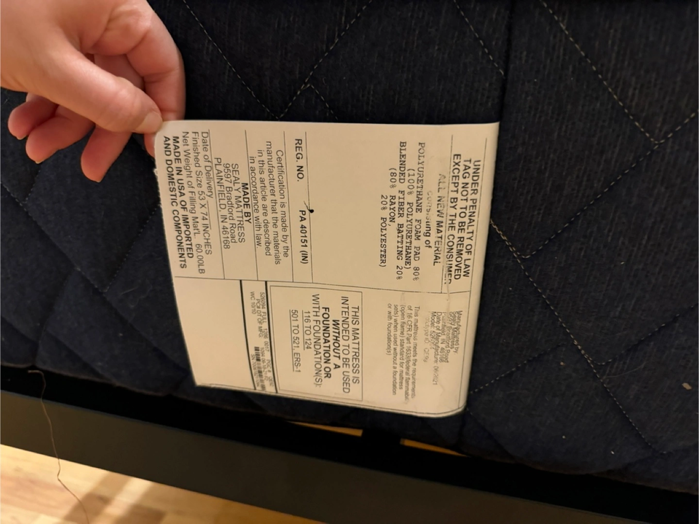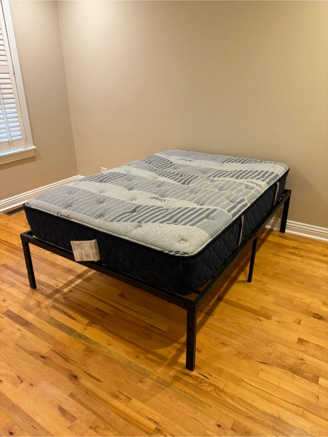 68Selling a Sealy ethereal gold plush mattress in great condition with metal platform bed frame. Only a year old, bought new. It is made in the USA. Perfect for smaller spaces! Is not super plush more like a true medium. Here’s the model originally $900/1000 https://www.us-mattress.com/products/sealy-etherial-gold-plush-12-inch-mattress?variant=50137039536440 Size: 75” x 54”