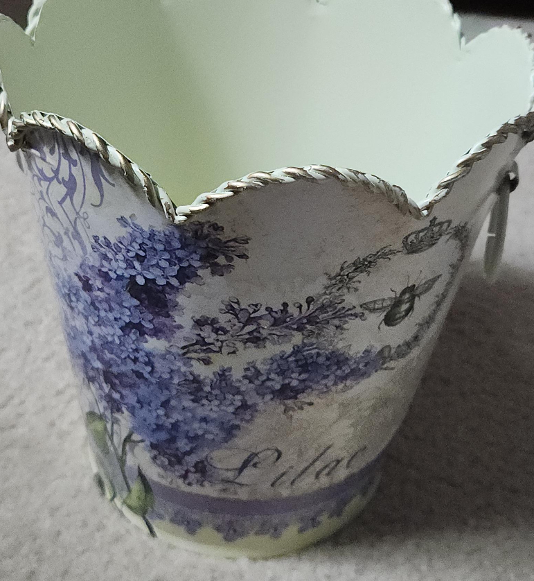 Cute flower pot with a lilac design! Perfect for adding a touch of spring to your home