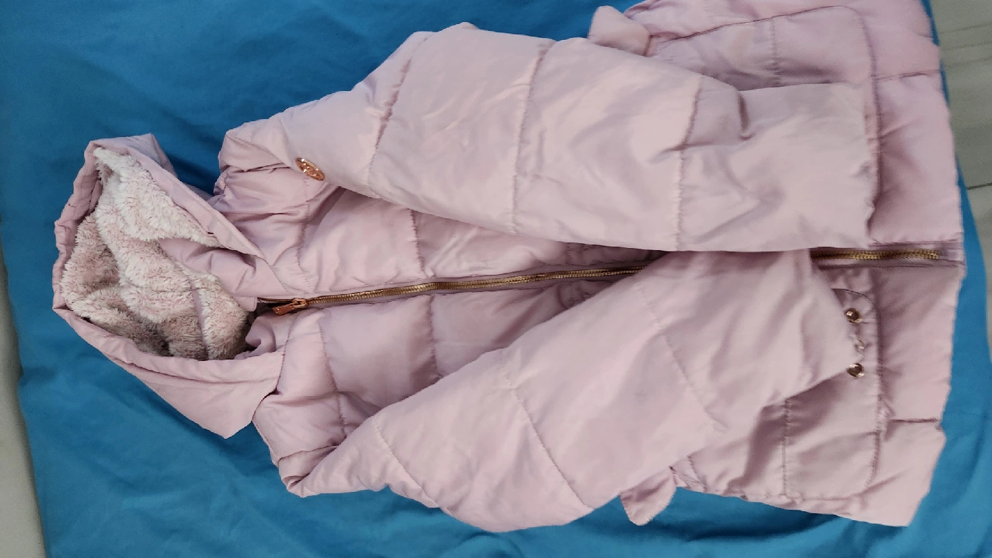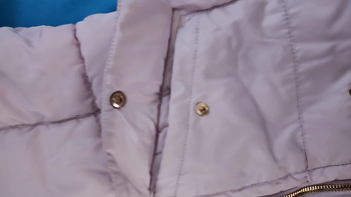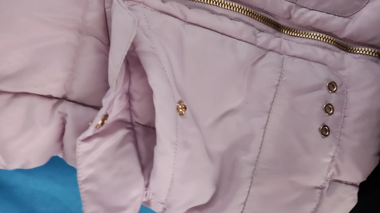 60Here's a cozy lilac puffer jacket! It's perfect for keeping warm on chilly days. The jacket features a hood and a zip-up front. It's in great condition and ready for a new home