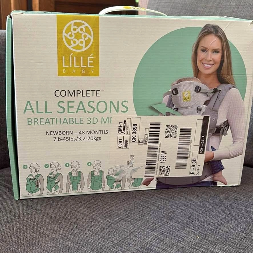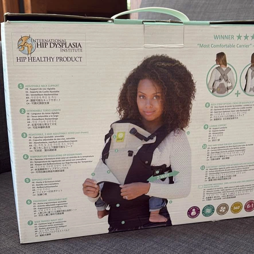 65Excellent used condition Lille soft structured baby carrier. Newborn - 48 months. 6 ways to carry. All pieces and instruction manual included. Slight discoloration on straps, shown in last photo. Porch pick up only in North Center.