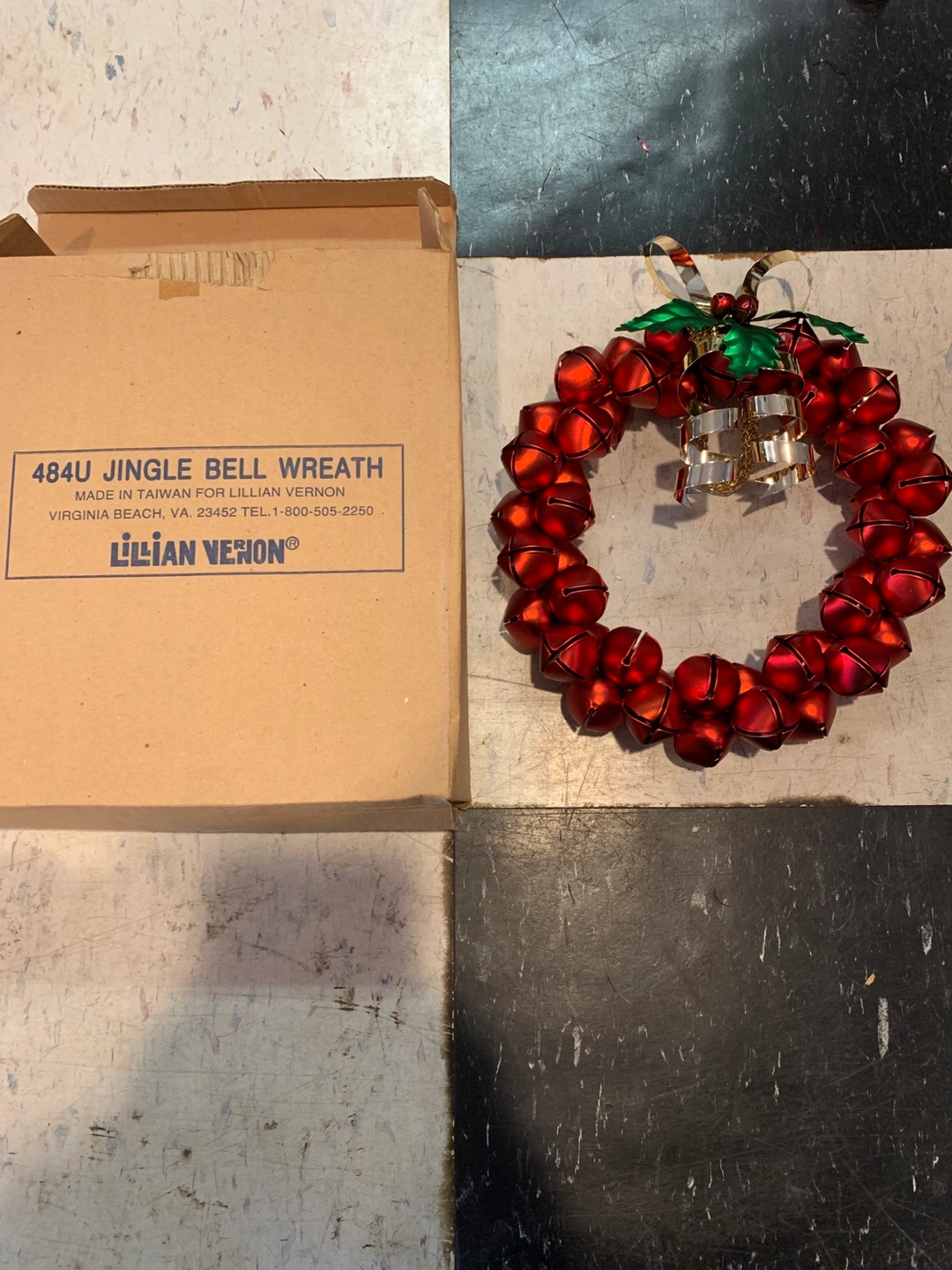 Selling a festive jingle bell wreath from Lillian Vernon! It's in great condition and comes with the original box. Perfect for adding a touch of holiday cheer to your home