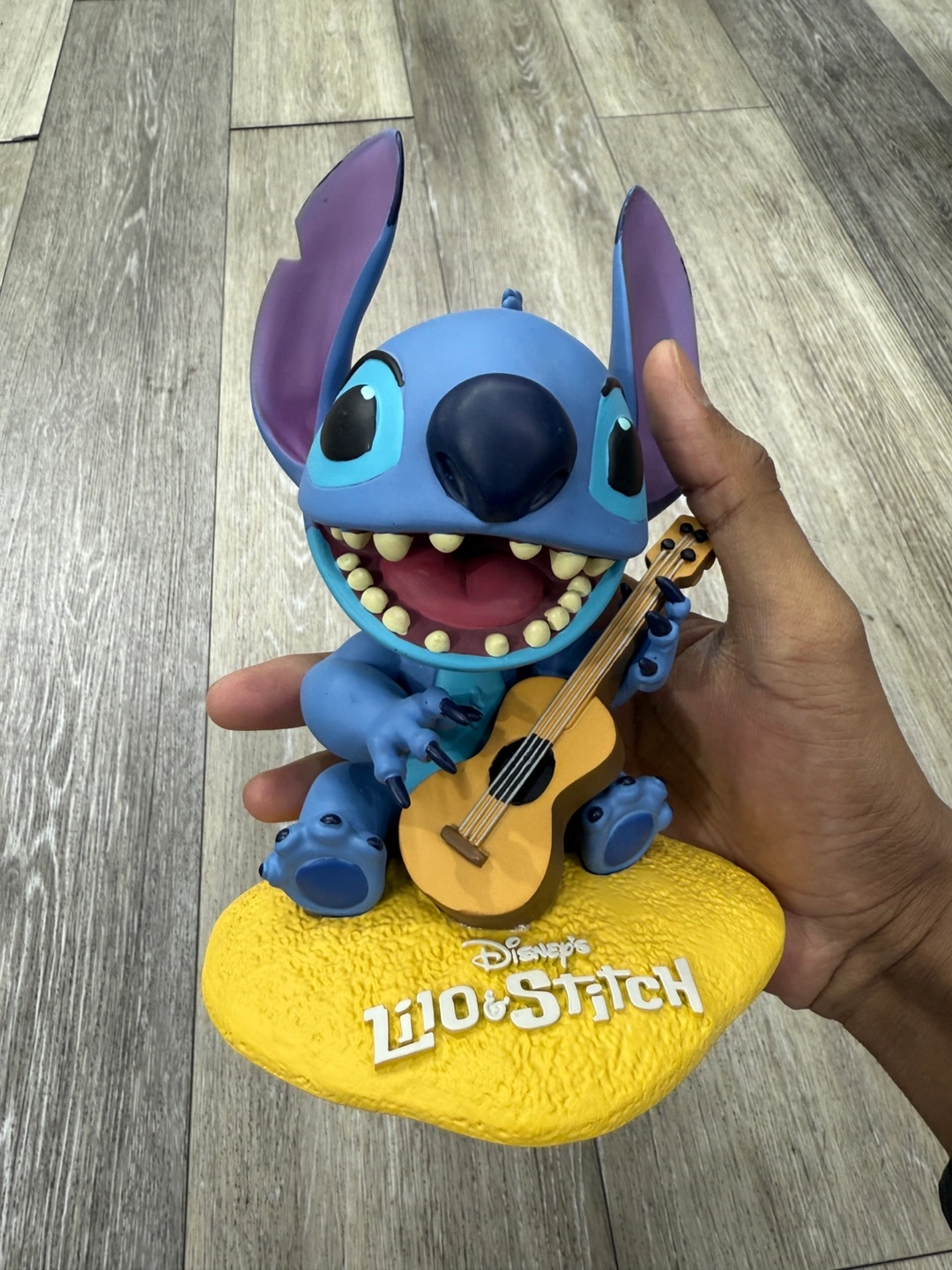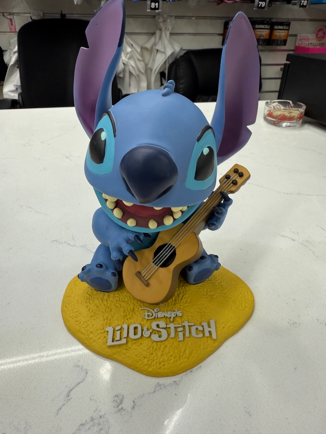 99Adorable Stitch figurine playing guitar. Lilo & Stitch branding. Great for collectors or fans. Comes with original box