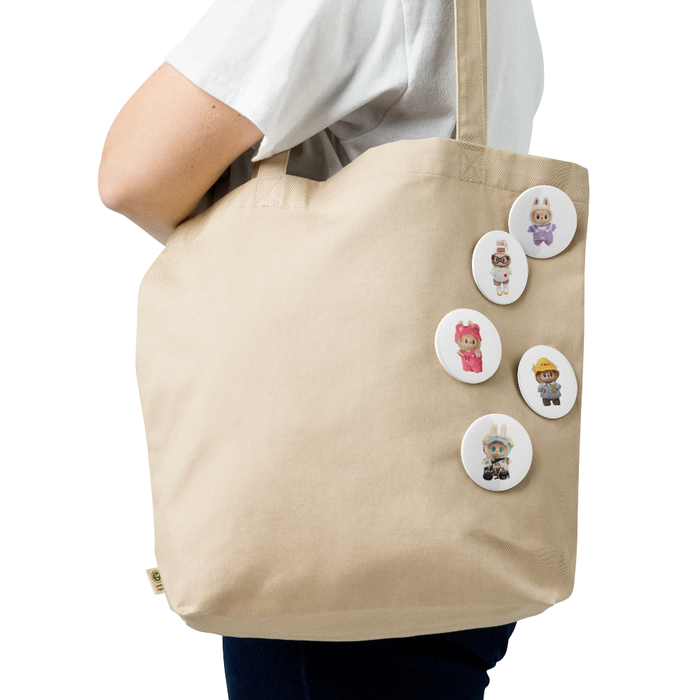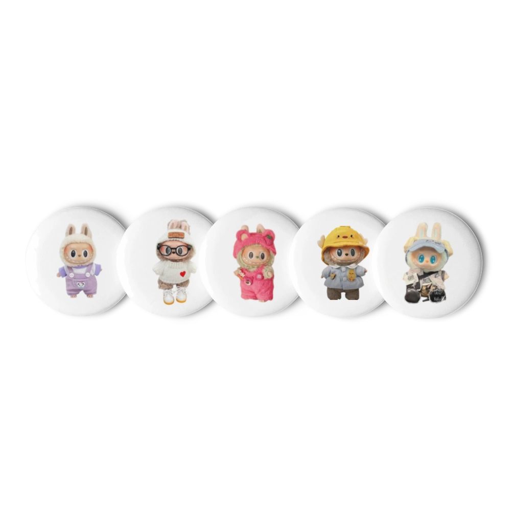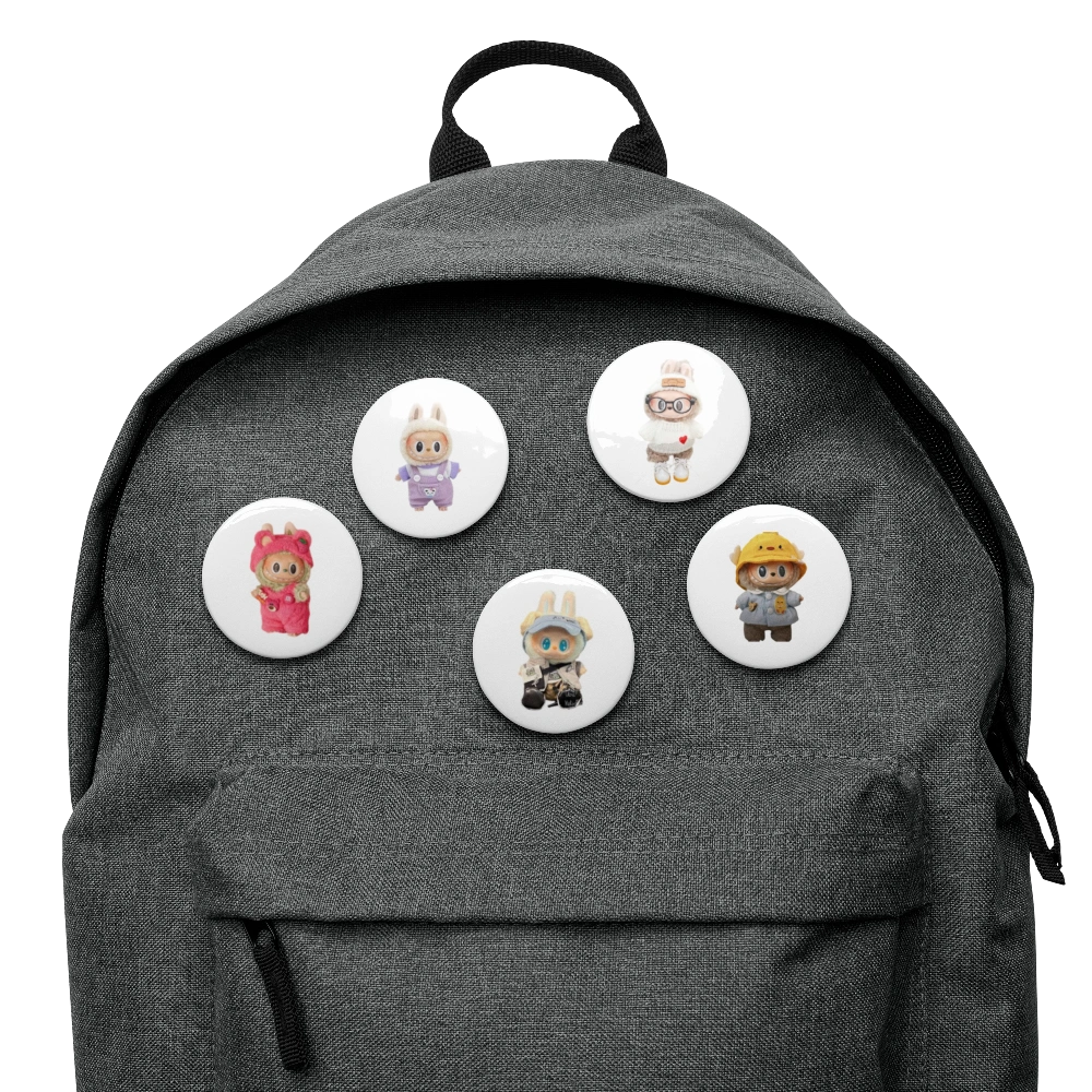 10Adorable button pins with unique LABUBU characters on each one. Perfect to add to your backpack or jacket. These buttons will bring a smile to your face and brighten your day. Comes in a Set of Five.