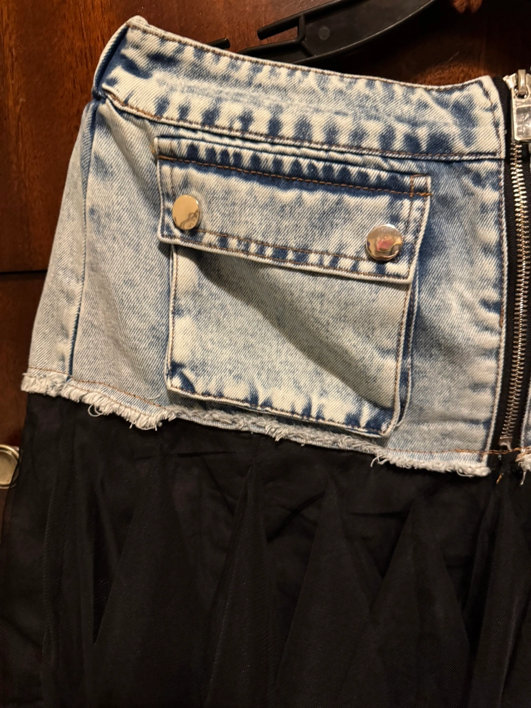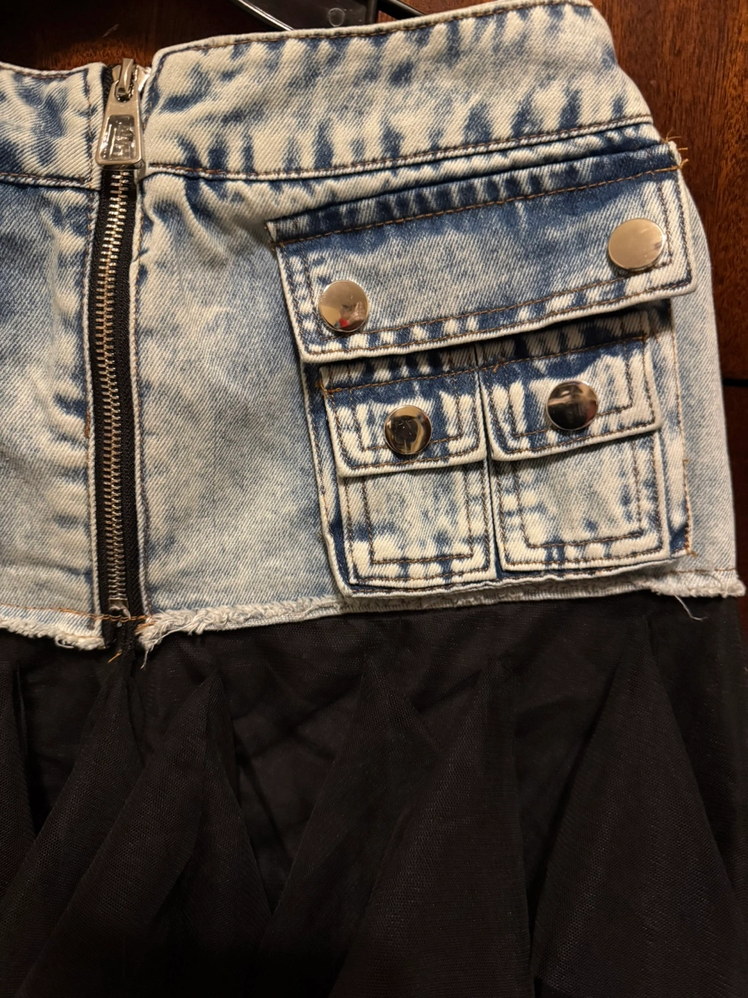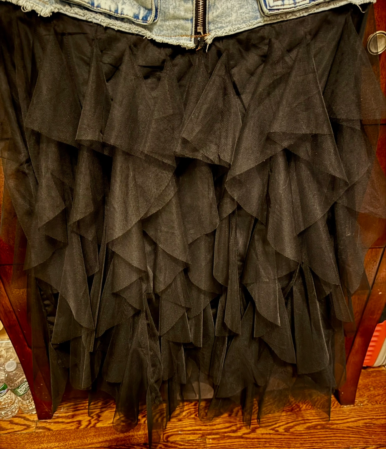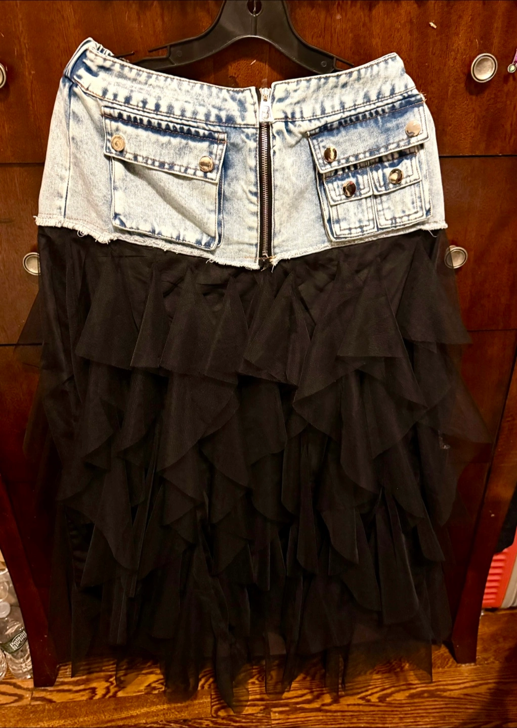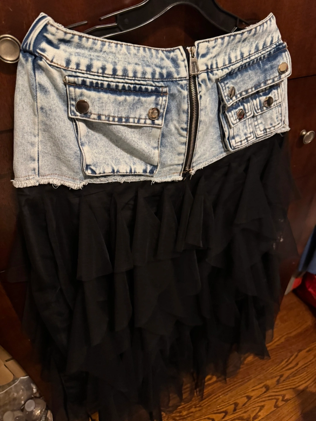Limited!! One of a kind! You won’t see it elsewhere. This stylish skirt features a unique combination of denim jeans and black organza tulle ruffles, perfect for a chic and modern wow look. Ideal for casual outings or a night out. NWT Imported Size M