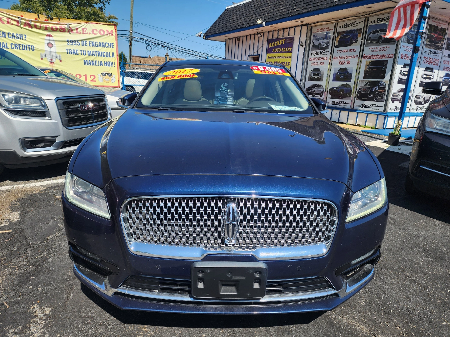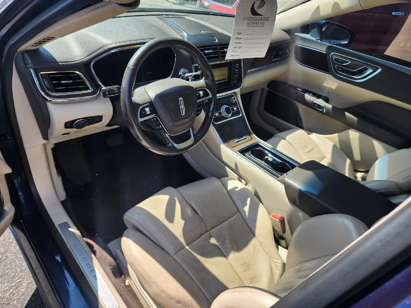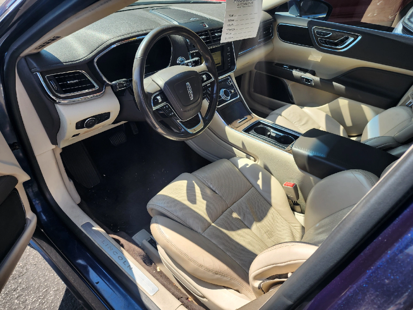 Selling a blue Lincoln Continental sedan. The interior is a light tan color. It appears to be in good condition.