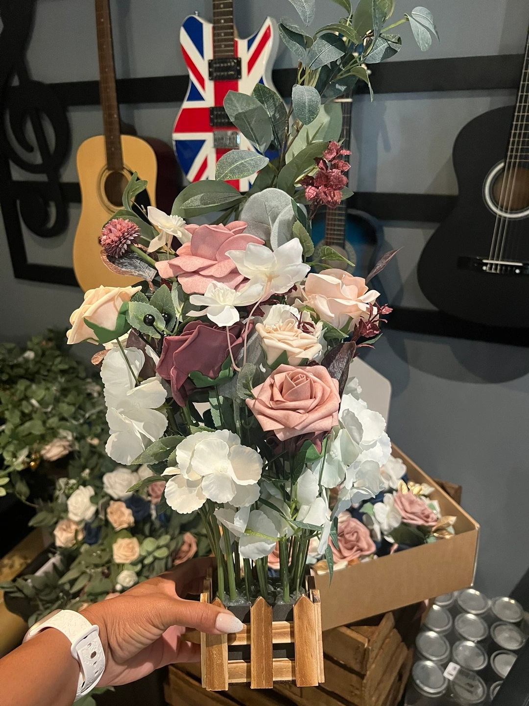 Freestanding Lings Navy And Dusty Rose Flower Arrangement