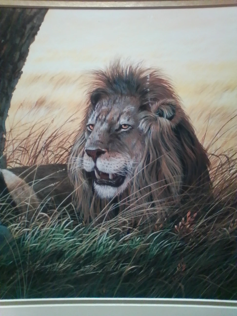 65Here's a framed art print of a lion by Balke. It's a lovely piece that would look great in any home