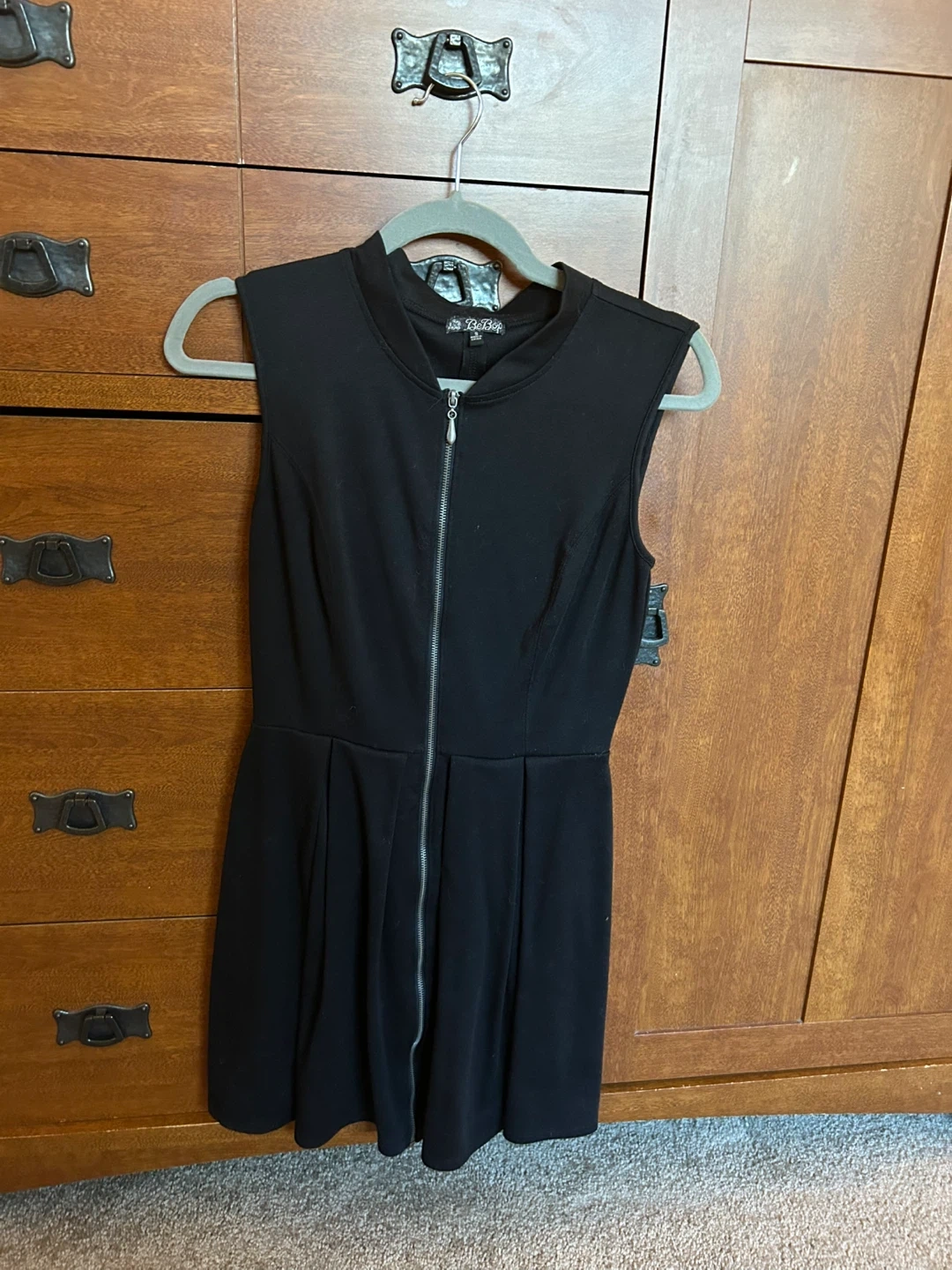 60Cute black dress from Lip Service! It features a zipper in the front. Perfect for a night out or a casual day! Size S, cinched waist.