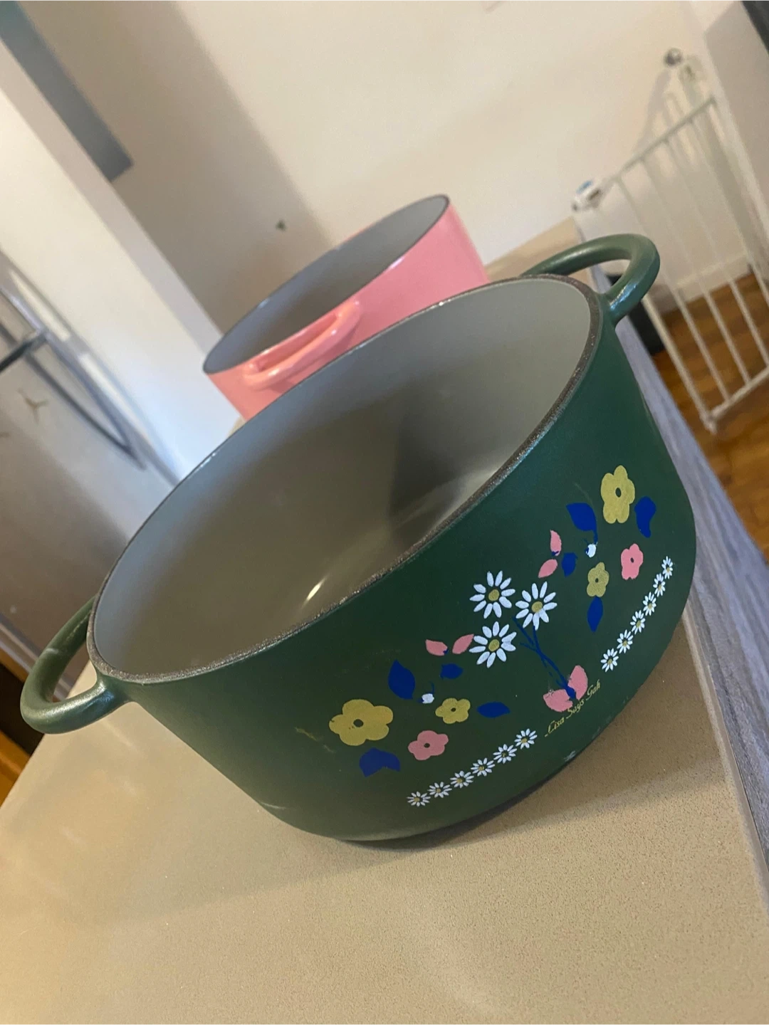 68Selling a Lisa Says Gah enamel Dutch oven! It’s green with a cute floral design. Perfect for cooking up your favorite meals