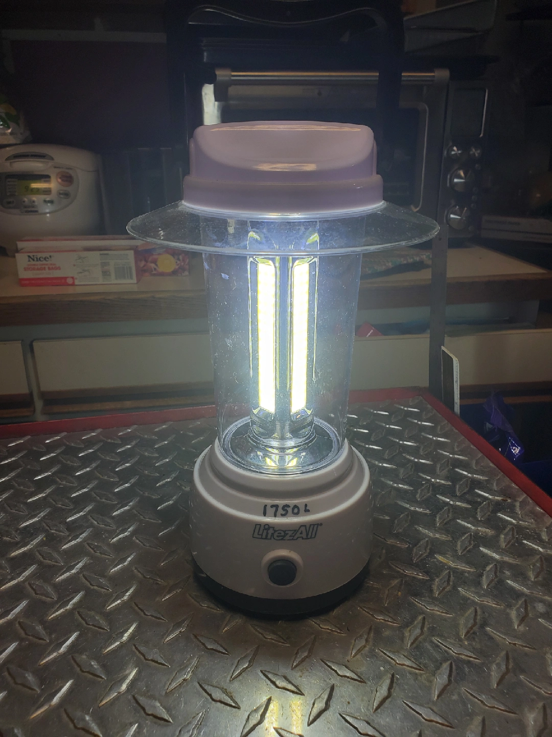 I'm selling a LiteZAll 1750L LED camping lantern. It's in great condition and ready for your next outdoor adventure! This lantern provides bright and efficient lighting for camping, hiking, or emergency situations. It is lightweight and portable, making it easy to carry in your backpack or store in your car.