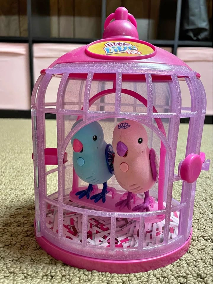 10Ready for a new home! Little Live Pets singing birds and cage. Used by only one child and has lots of play left. Smoke/pet free home.
