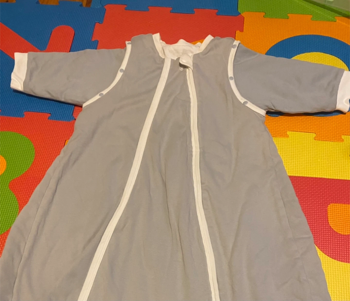 44Here's a Little Spud Sleep Sack in size L! It's made with 100% organic cotton fabric and a 100% polyester filler. The lining is also 100% organic cotton. It's in great condition and ready to keep your little one snug!