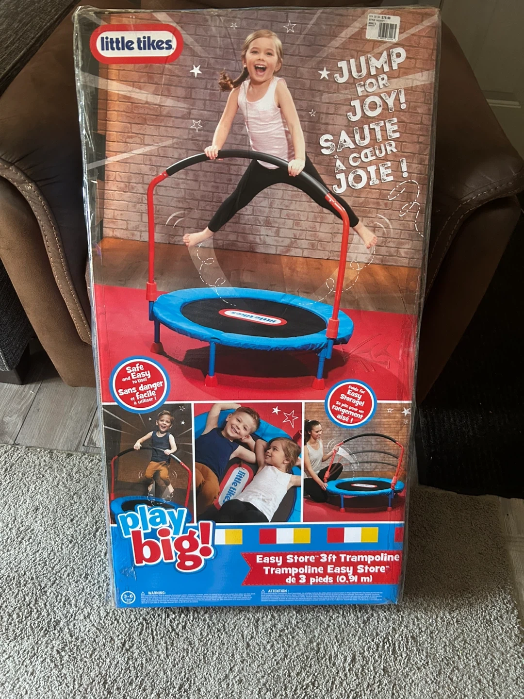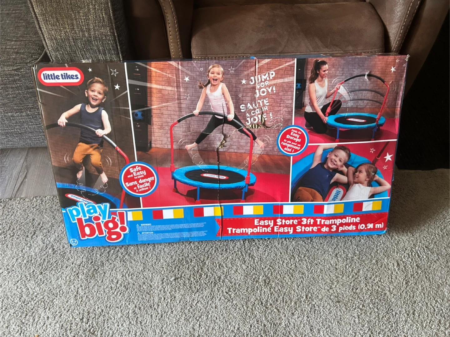 Selling a like-new Little Tikes Easy Store 3ft Trampoline! It's perfect for little ones who love to jump and play. The trampoline is designed for easy storage, making it convenient for smaller spaces. Jump for joy! Located round lake beach