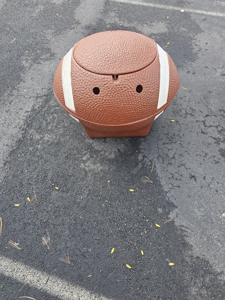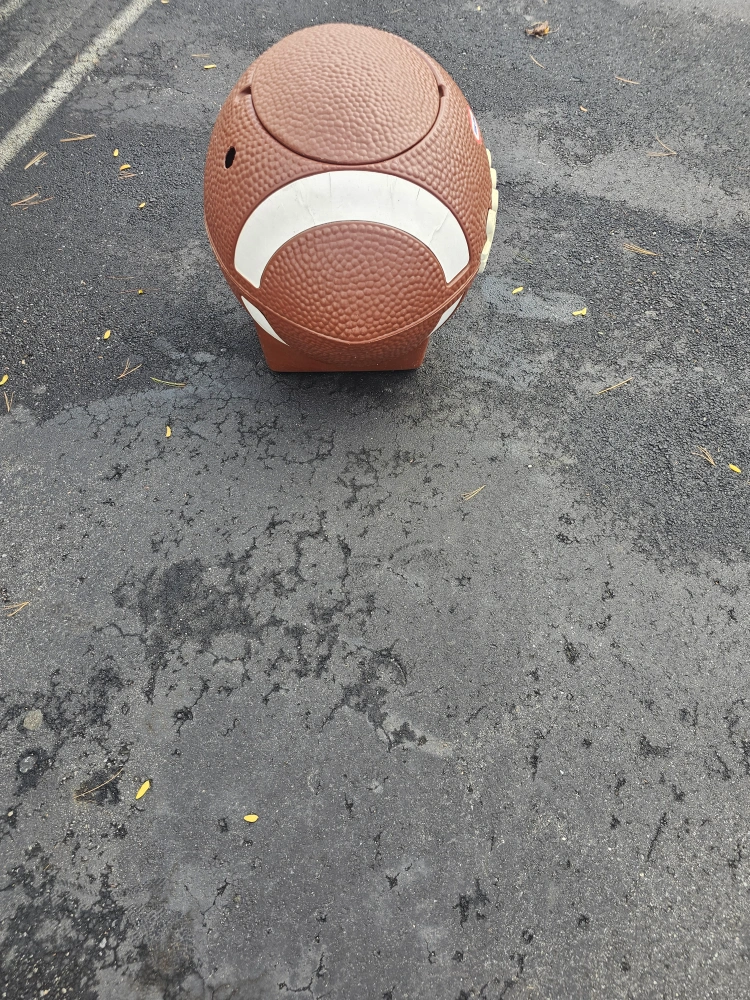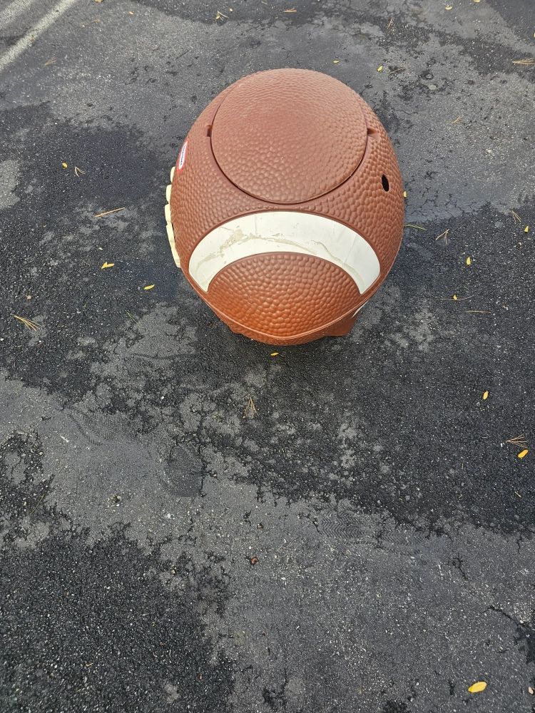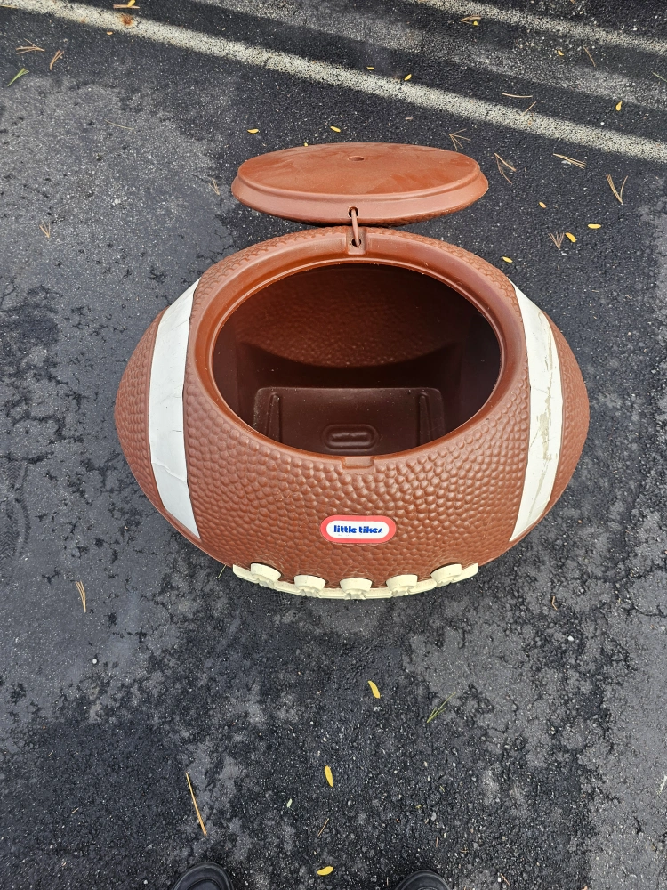 Selling a Little Tikes football-shaped toy box! It's perfect for storing toys and adding a sporty touch to any room. It has a lid to keep everything neatly tucked away.