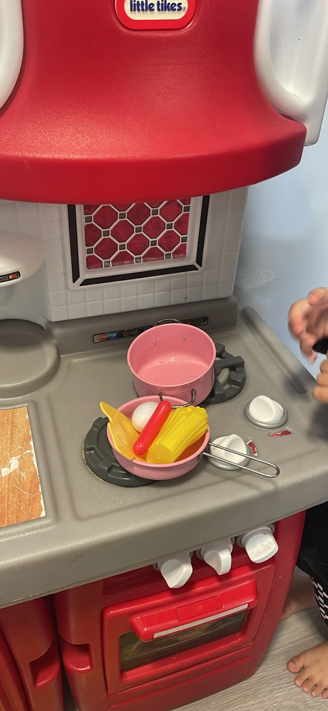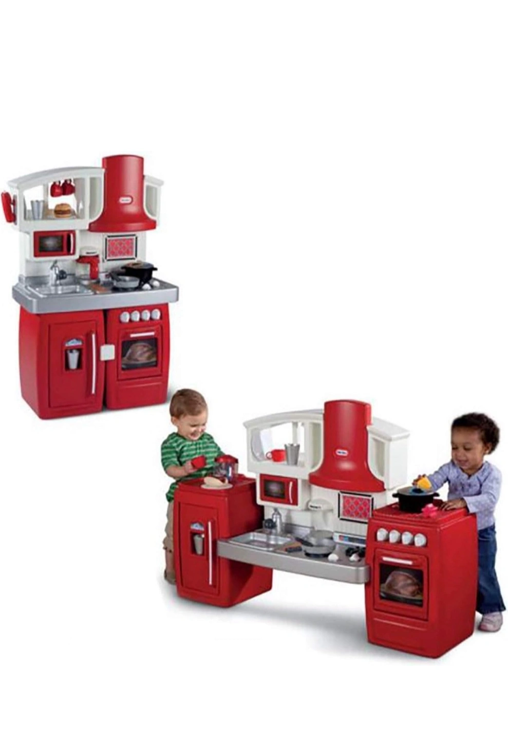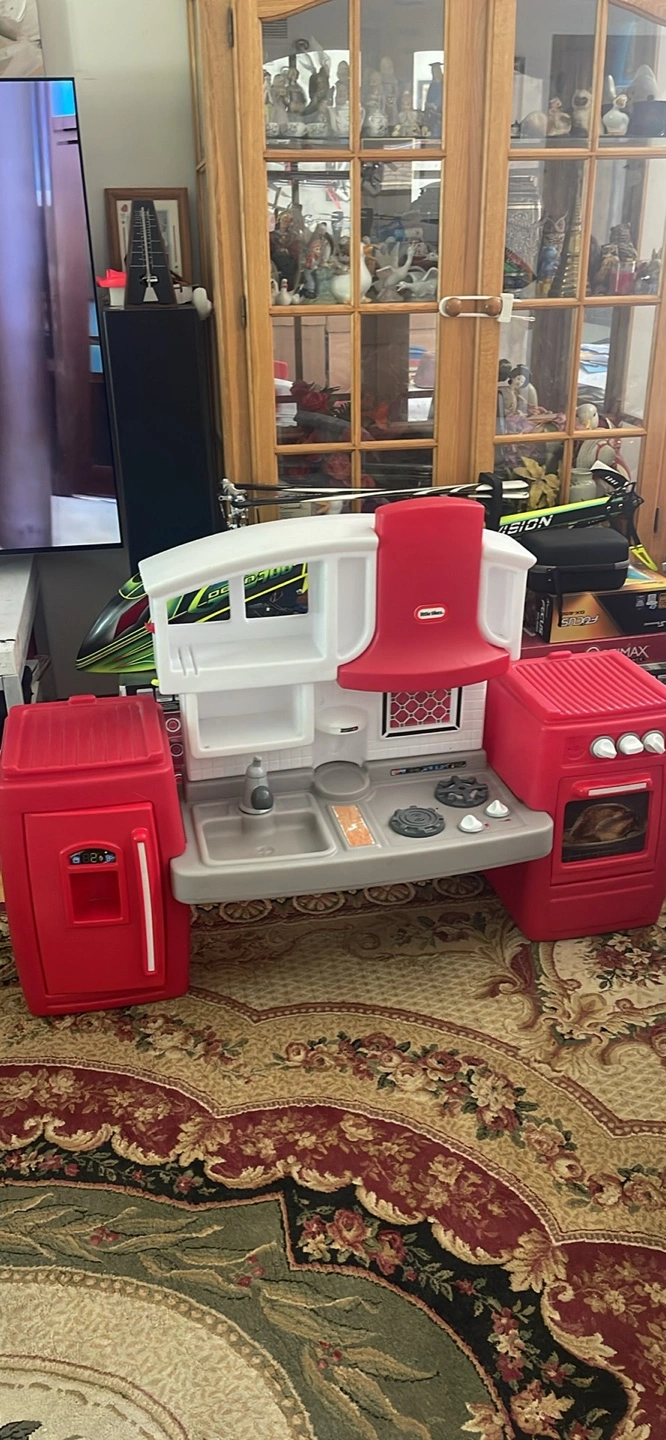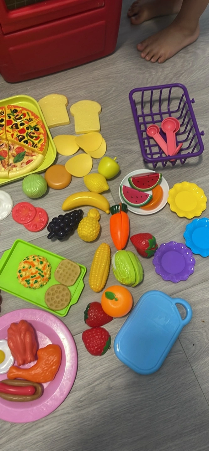 167Play kitchen includes sink, stove, microwave, and many food accessories. Lots of pretend play food pieces. Great for imaginative play.