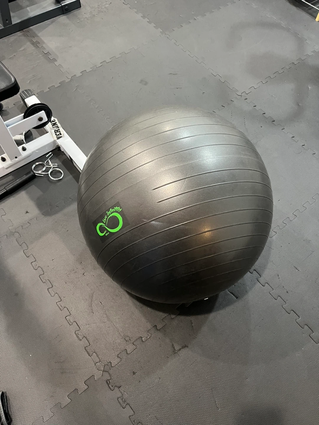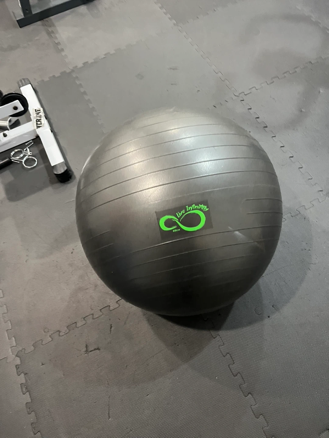 60I'm selling a Live Infinitely exercise ball in gray. It's perfect for workouts and improving your balance. Feel free to message me if you're interested!