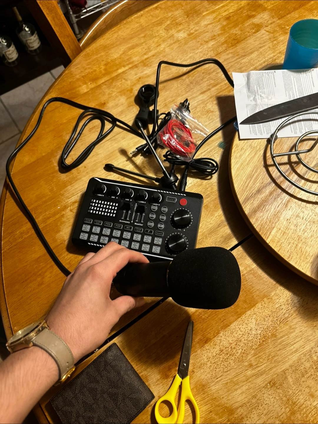 I'm selling a live sound card and microphone set. It looks like it's in great condition and comes with all the necessary cables and accessories to get you started with streaming or recording! Perfect for anyone looking to upgrade their audio setup.
