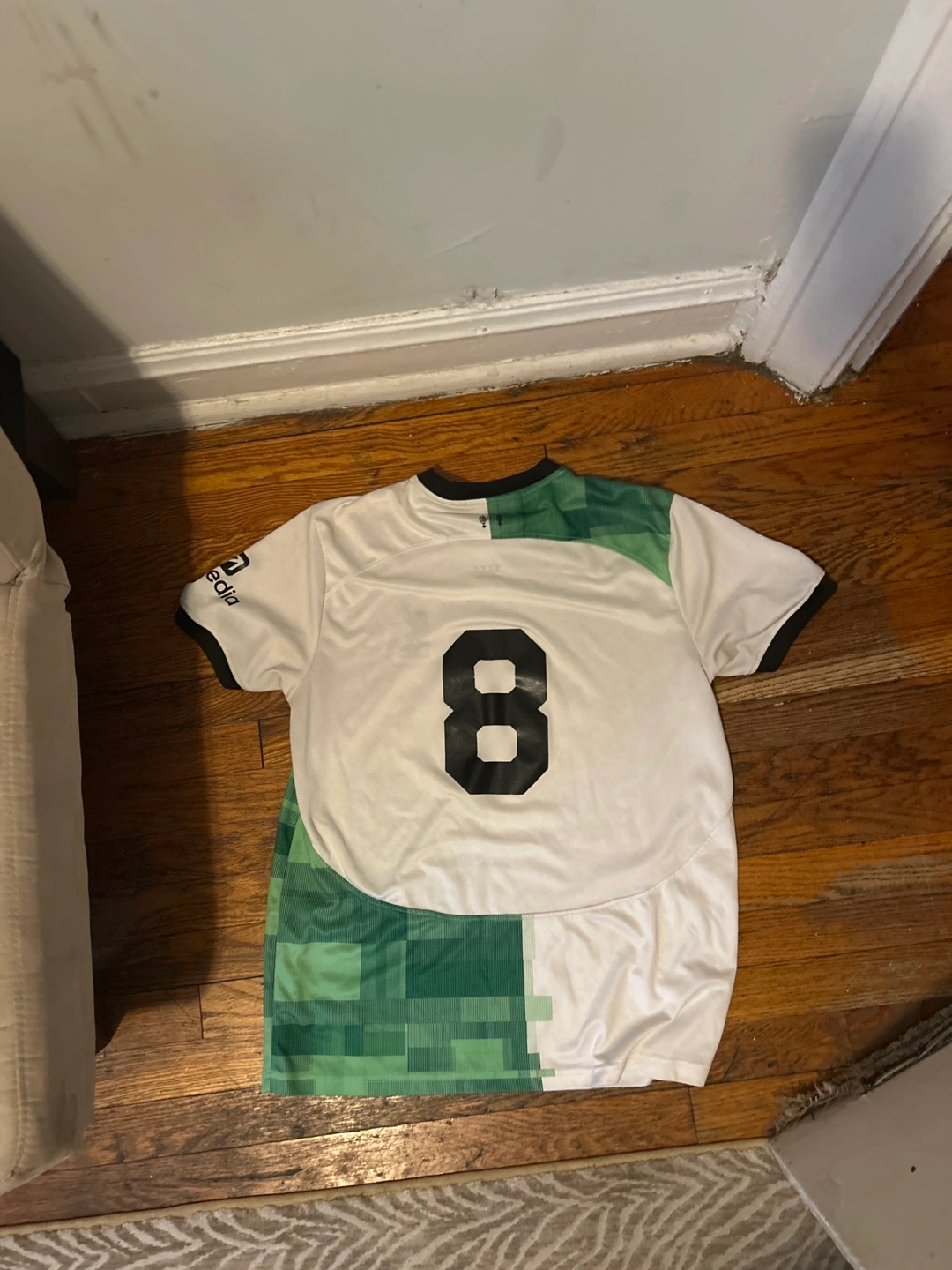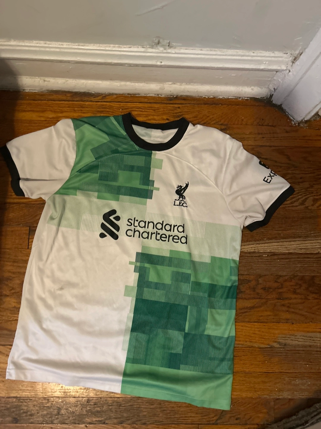 10Selling a Liverpool FC 2021/22 away jersey. The size is XL, it features the Standard Chartered logo on the front and the number 8 on the back. Great for any Liverpool fan!