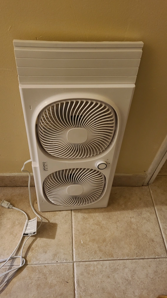 Selling a LIVING COMFORT double window fan. It has two fans and a control knob to adjust the fan speed