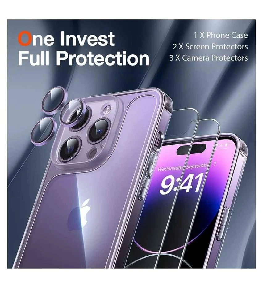 118LK for iPhone 14 Pro Max Phone Case Clear with Screen Protector & Camera Lens Protector 10FT Military Grade Drop Tested, Slim Protective Phone Case for iPhone 14 Pro Max, Crystal Clear