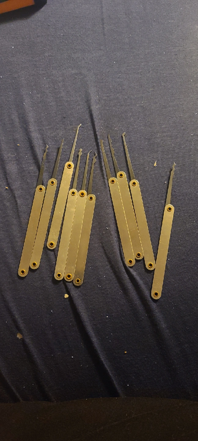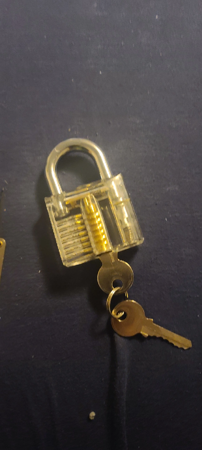 Selling a set of lock picks with a practice lock. Great for learning the art of lock picking! The set appears to be in good condition and ready for use.