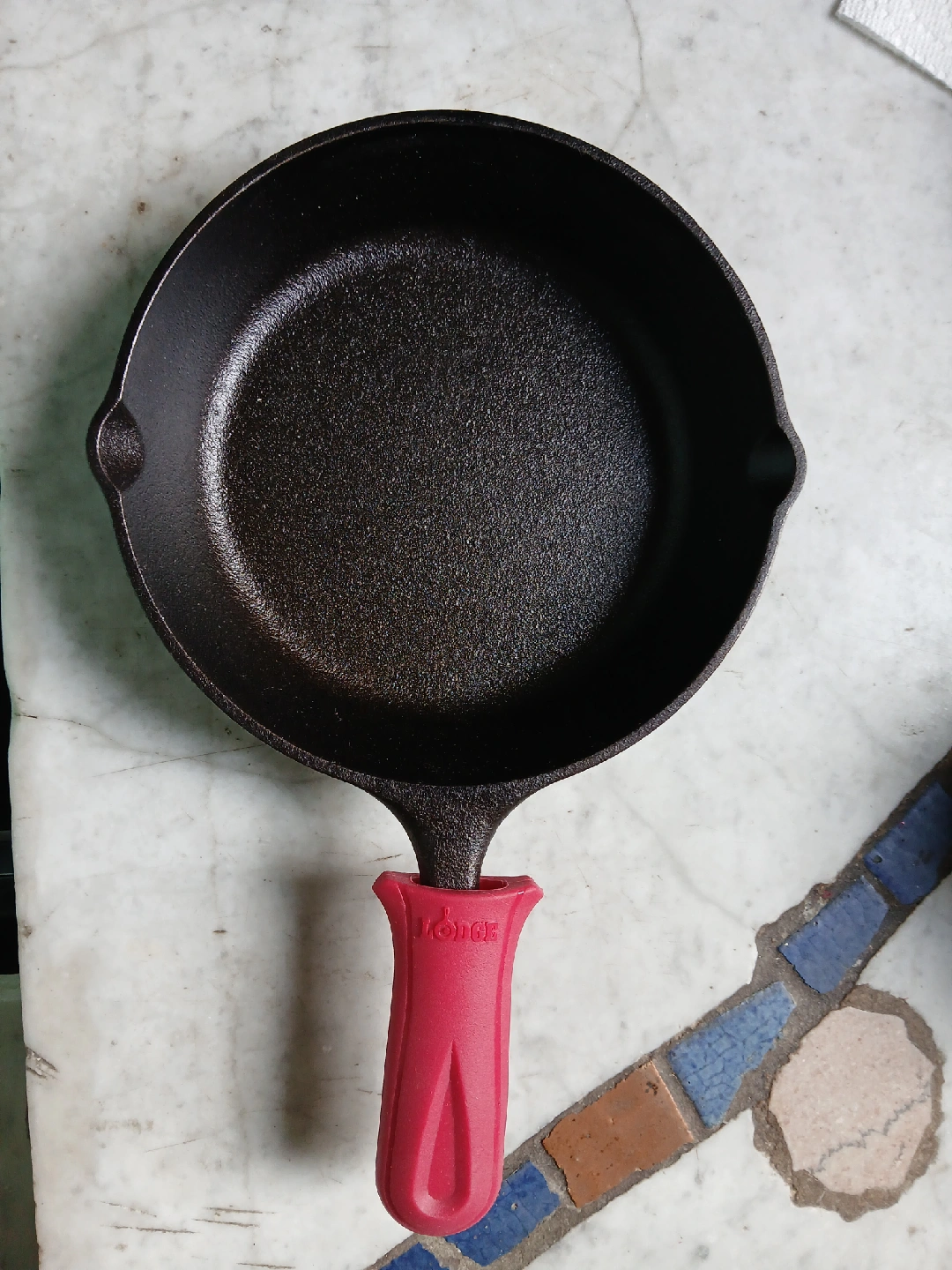 308A Lodge 9-inch cast iron skillet, never used. It comes with a red handle cover. This skillet is perfect for cooking a variety of meals and is known for its durability and even heating and it gets better with age. Made in the USA. $13.50