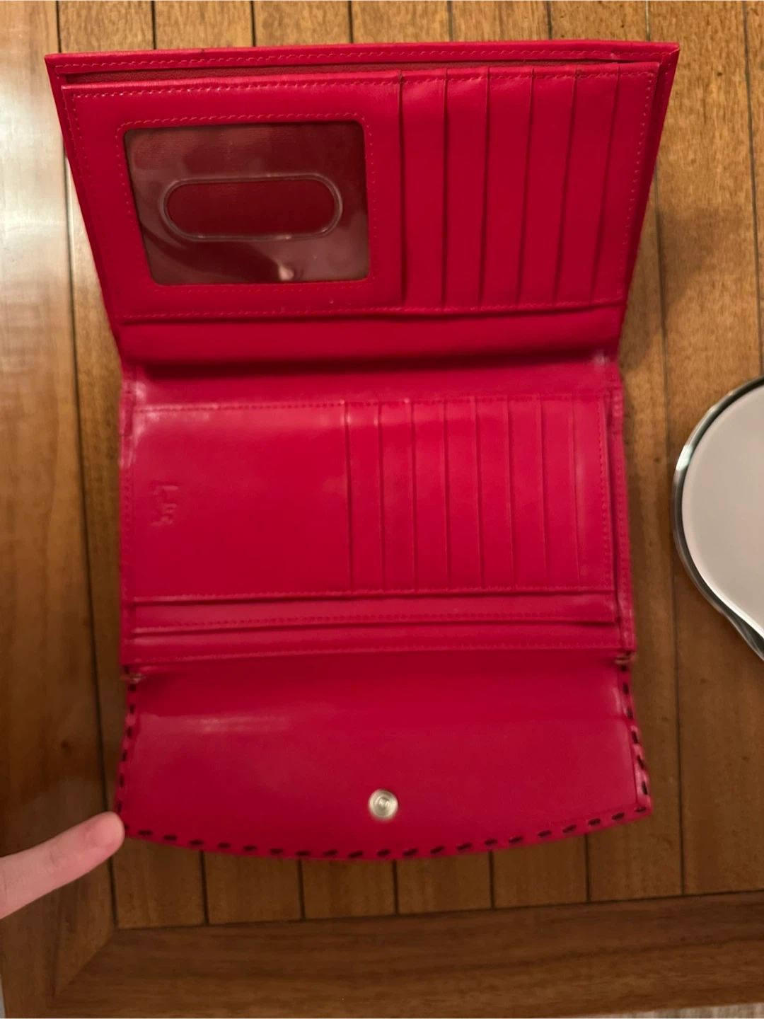 Selling a vintage Lodis wallet in red leather! It has a snap closure and plenty of space for cards and cash. Perfect for everyday use! Some slight wear on the interior, but never used !