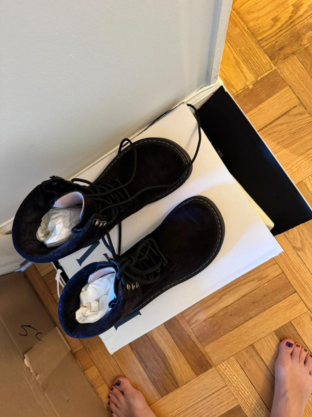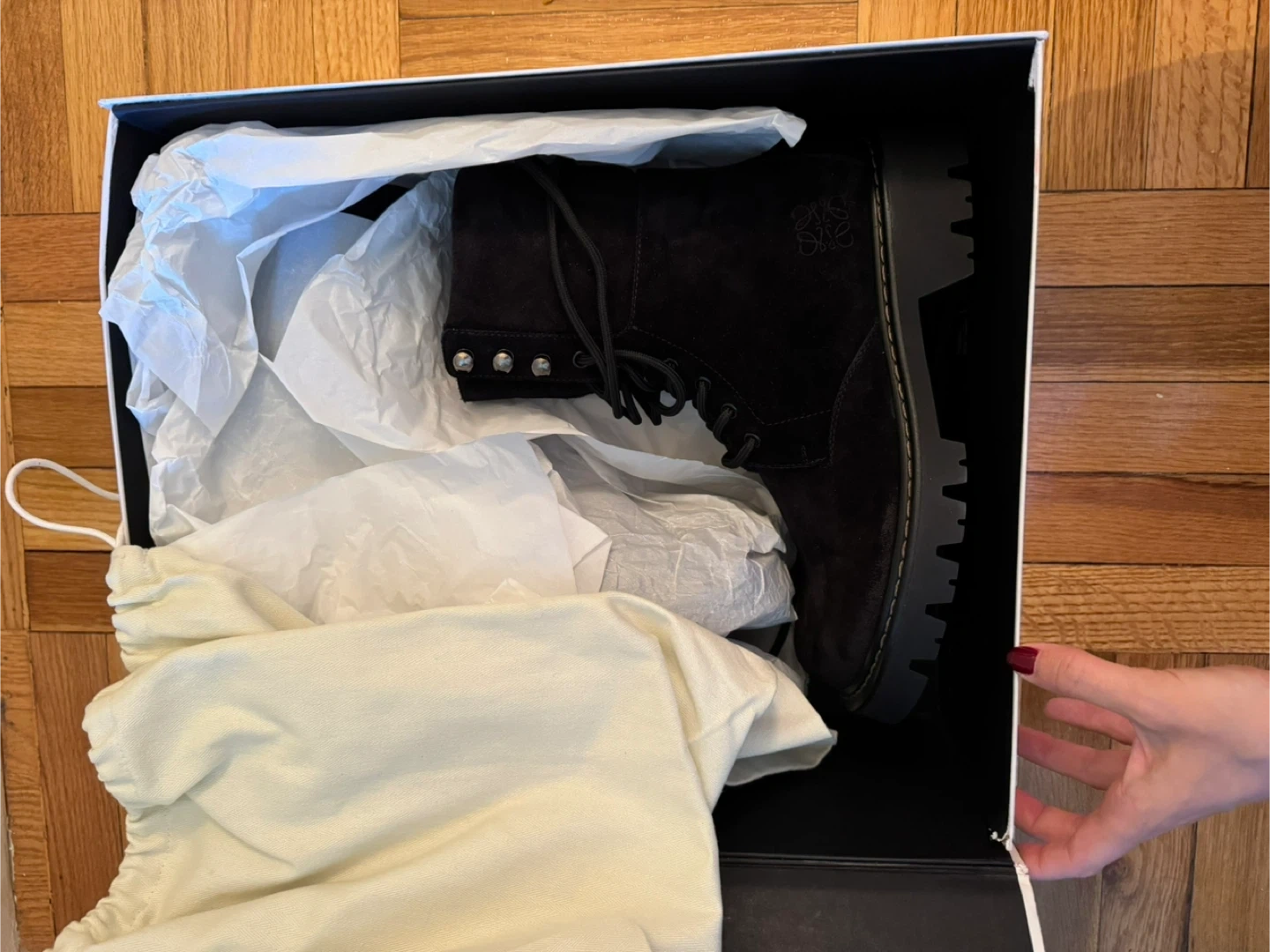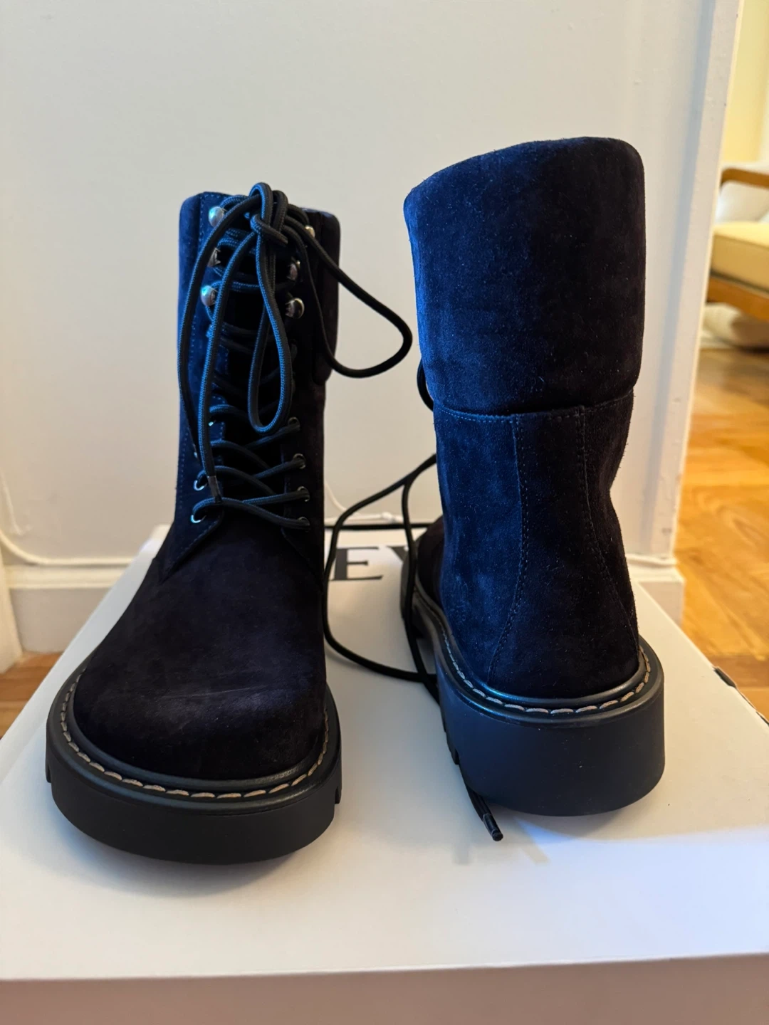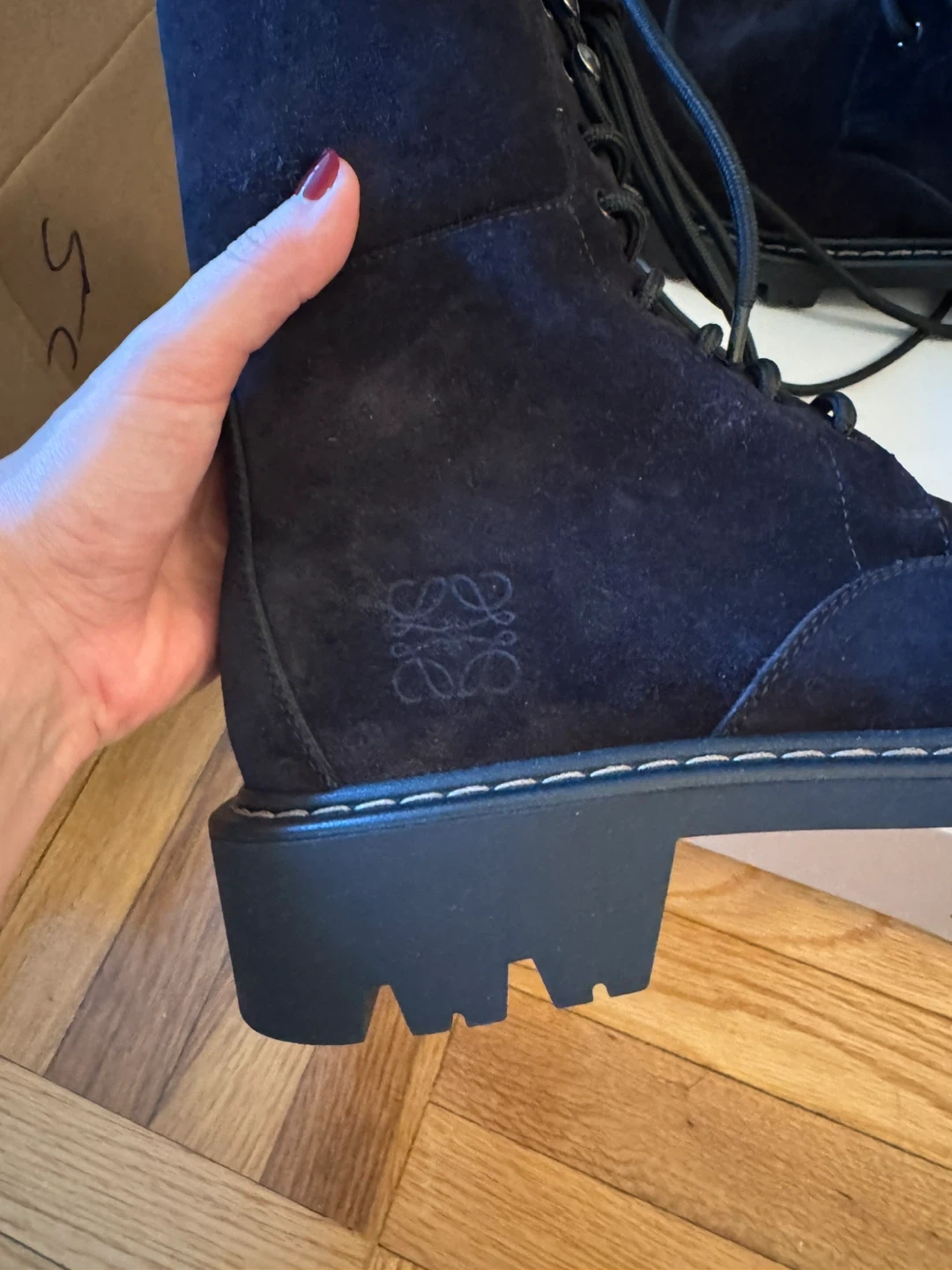 Chic black suede combat boots by Loewe. Features a sturdy lace-up design. Perfect for edgy style. Never used before. Size 10/ European 40