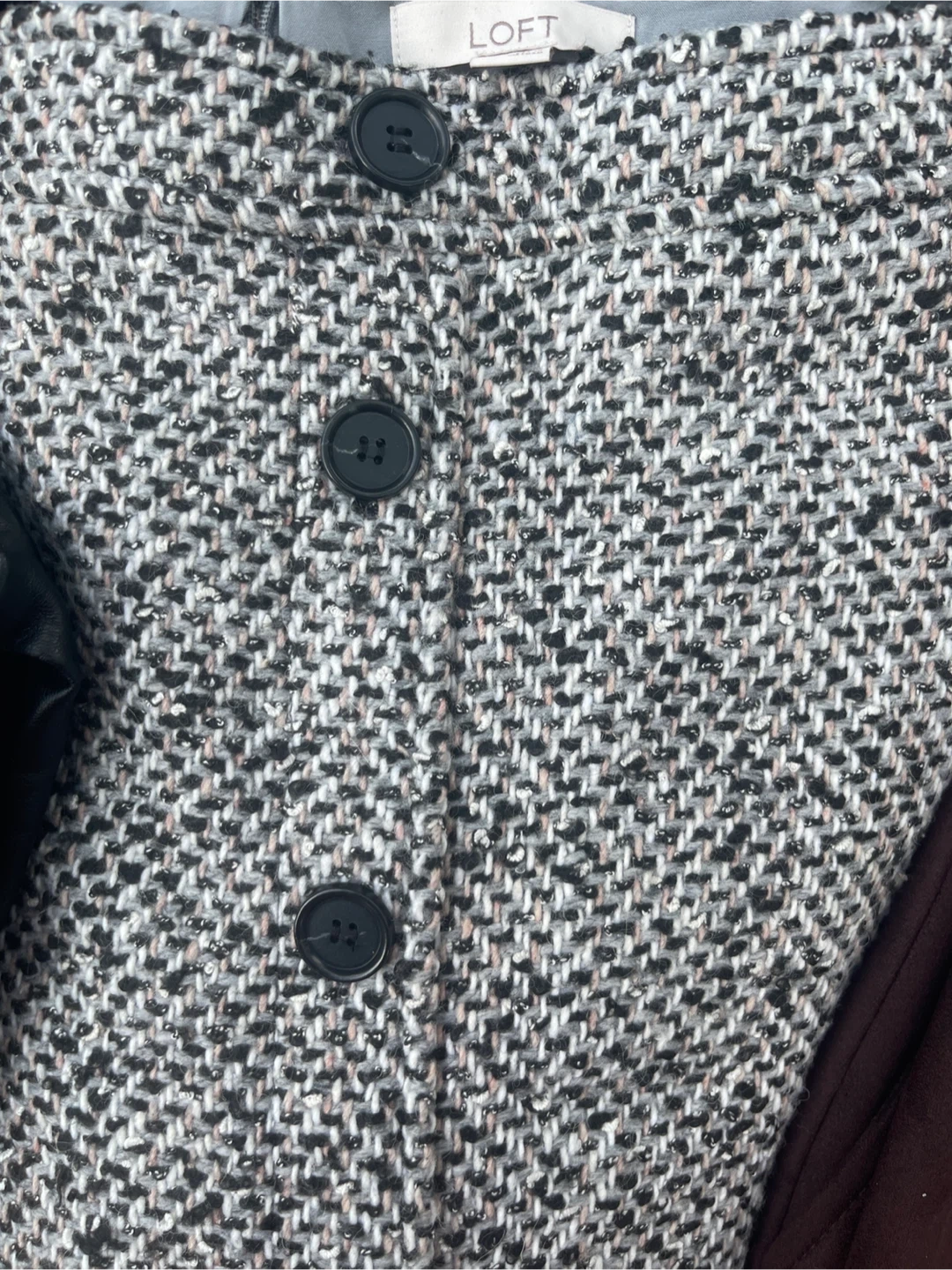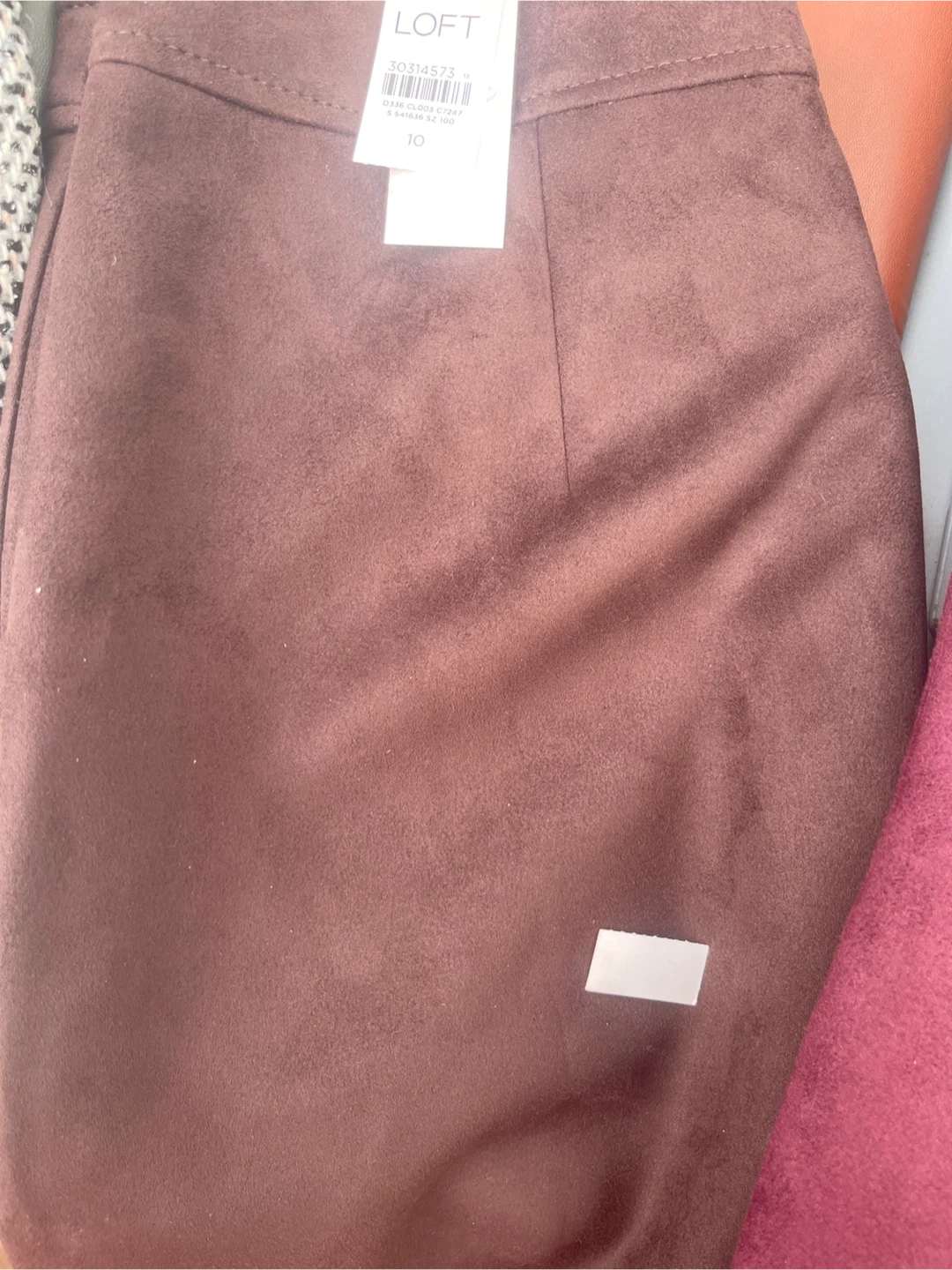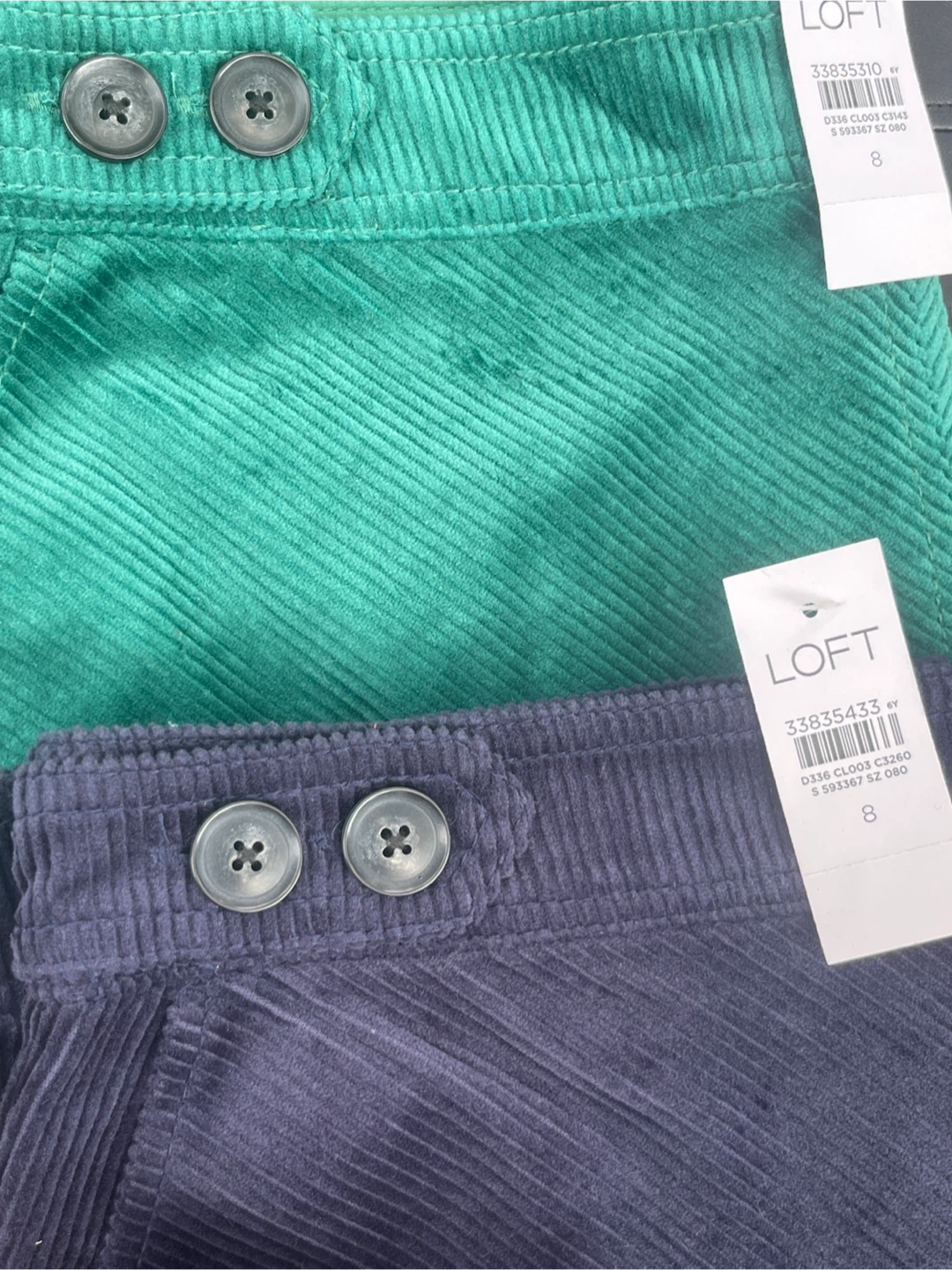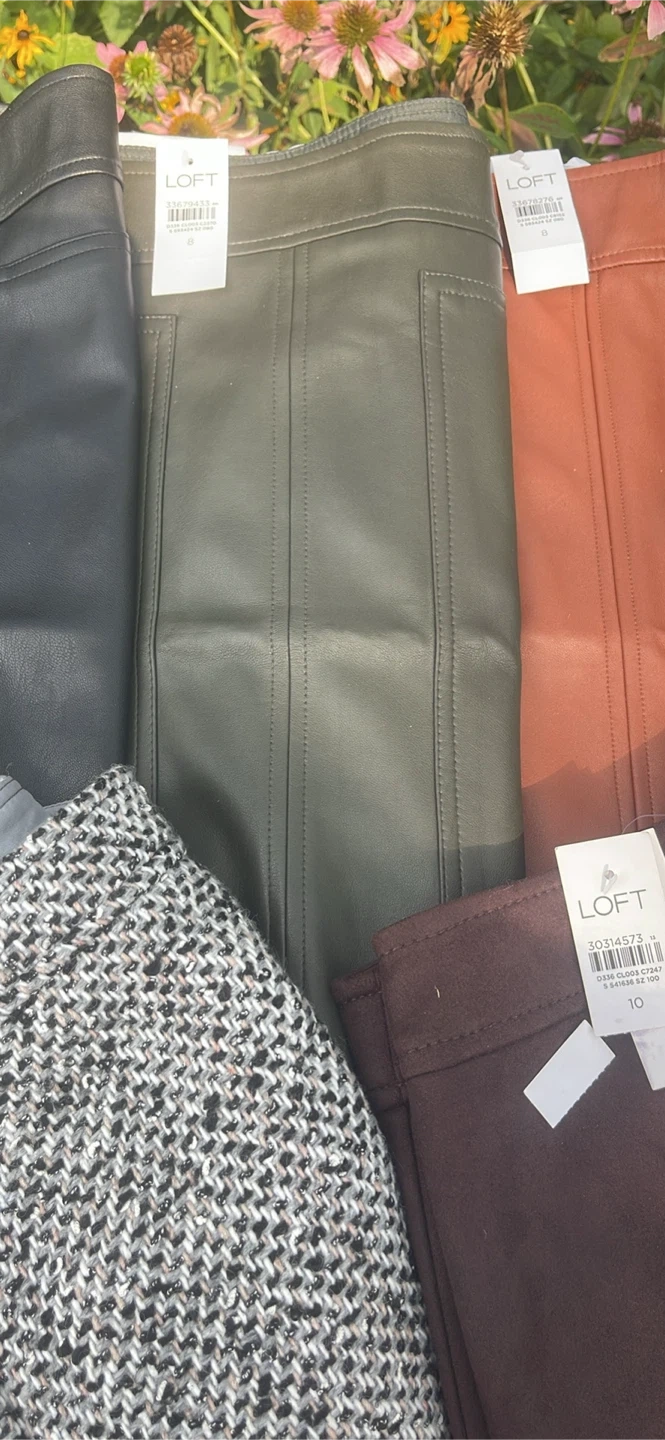 Selling a collection of LOFT skirts in various styles and materials. There are corduroy, faux leather, and tweed skirts available. Sizes include 8 and 10. Great for adding variety to your wardrobe! 18" long.