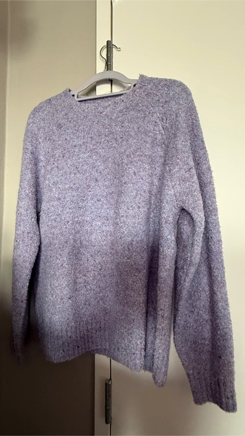 60Selling a cozy LOFT sweater in a beautiful lavender color. It's a size large and made of a soft, comfortable material. Perfect for layering or wearing on its own!